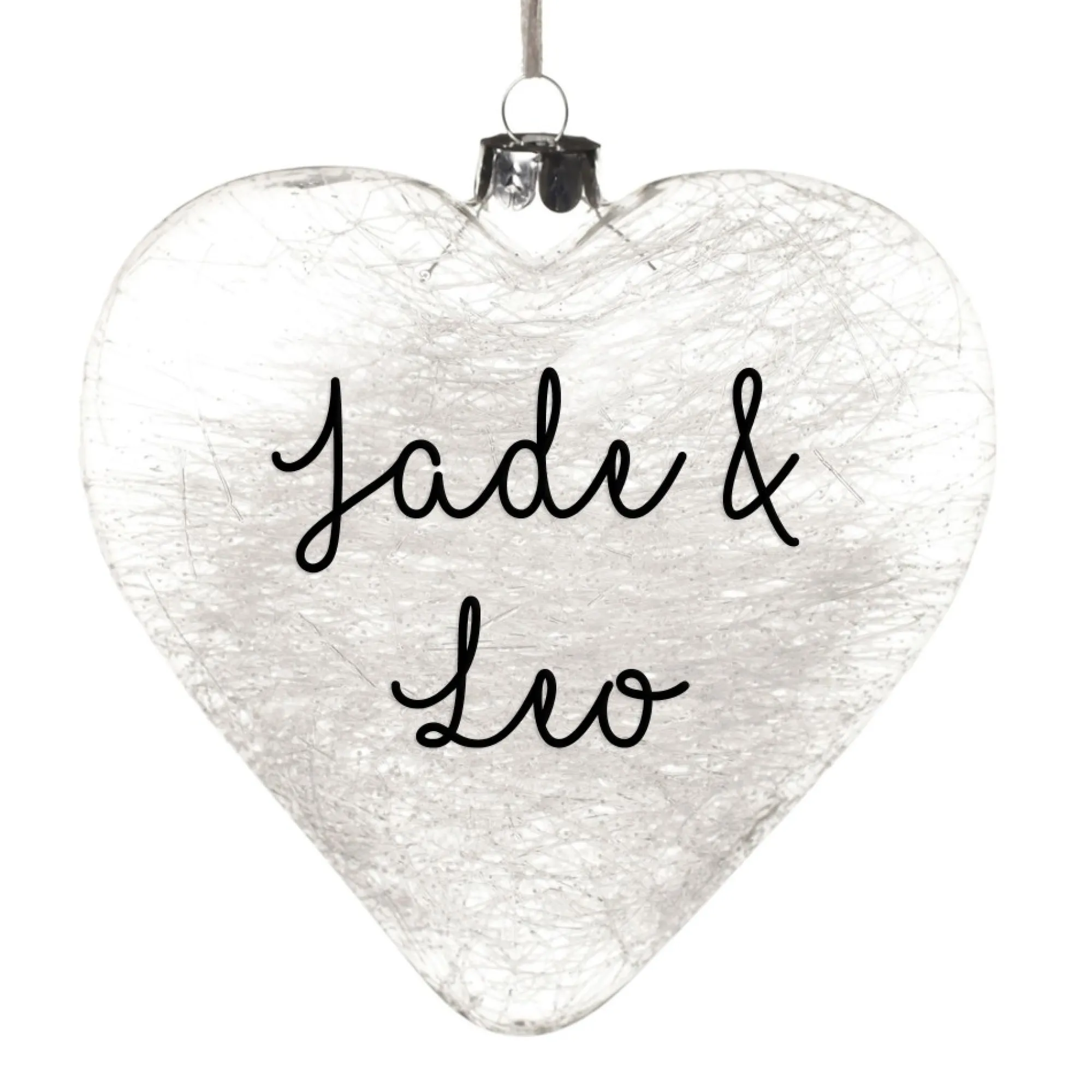 Create A Unique Gift Or A Beautiful Keepsake This Christmas With A Personalised Icicle Glass Heart. This Delicate Heart-Shaped Bauble Is Crafted From High Quality Glass And Is Filled With Delicate Hand Spun Glass Icicles.