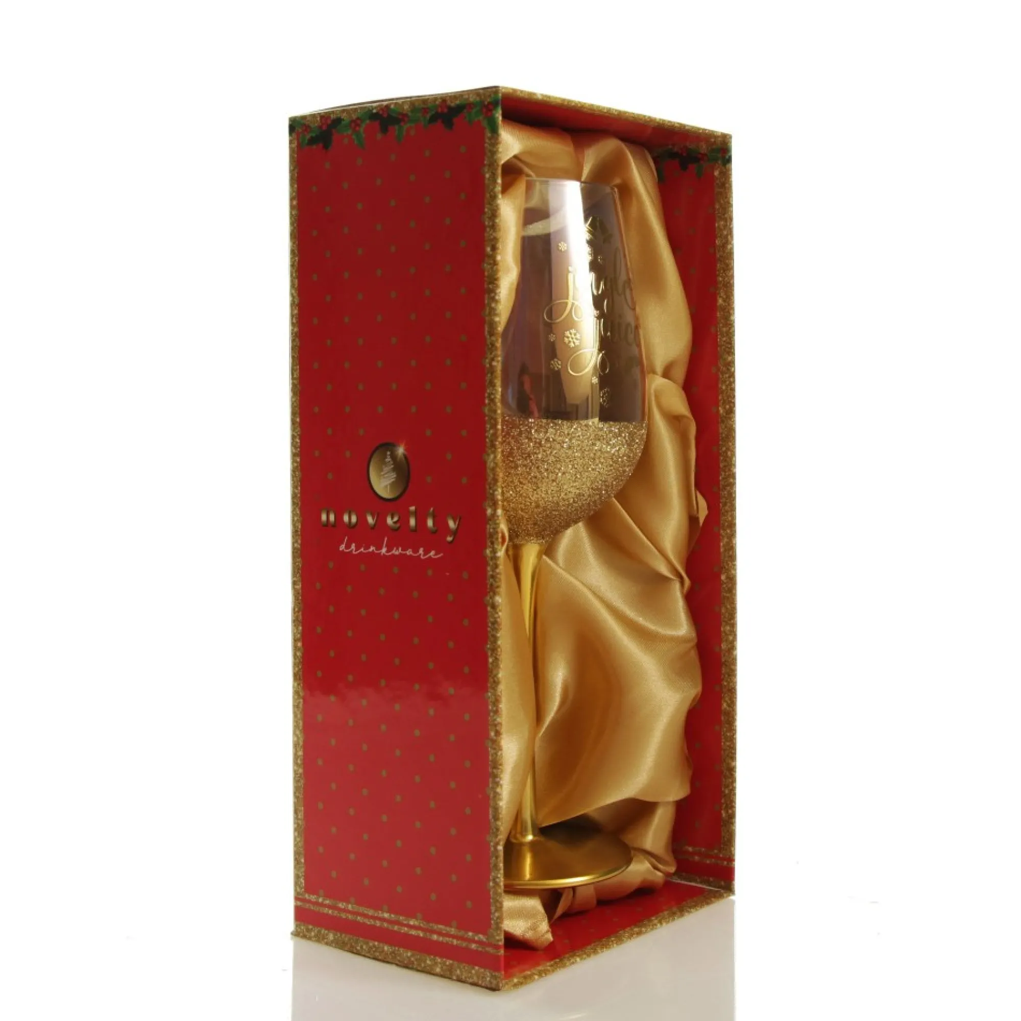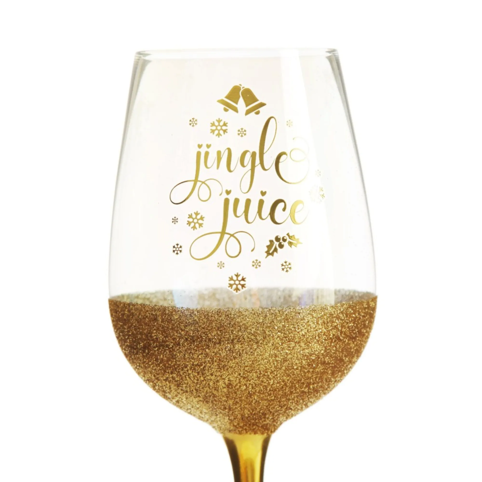 Celebrate The Festive Season In Style With This Jingle Juice Christmas Wine Glass. Hand-Crafted Into A Sleek And Sophisticated Shape With An Iridescent Rainbow Finish, This Wine Glass Features A Gold Stem, Gorgeous Gold Glitter Base And The Phrase ‘Jingle Juice’ In Gold With Cursive Writing With Festive Details. Give As An Exciting And Memorable Gift For Friends And Loved Ones. Sip Your Favourite Wine, Cocktail, And More From This Delightful Glass As You Celebrate The Most Wonderful Time Of The Year. Glass Comes With A Stylish Satin Lined Gift Box, Perfect To Give To A Family Member Or Friend This Christmas.