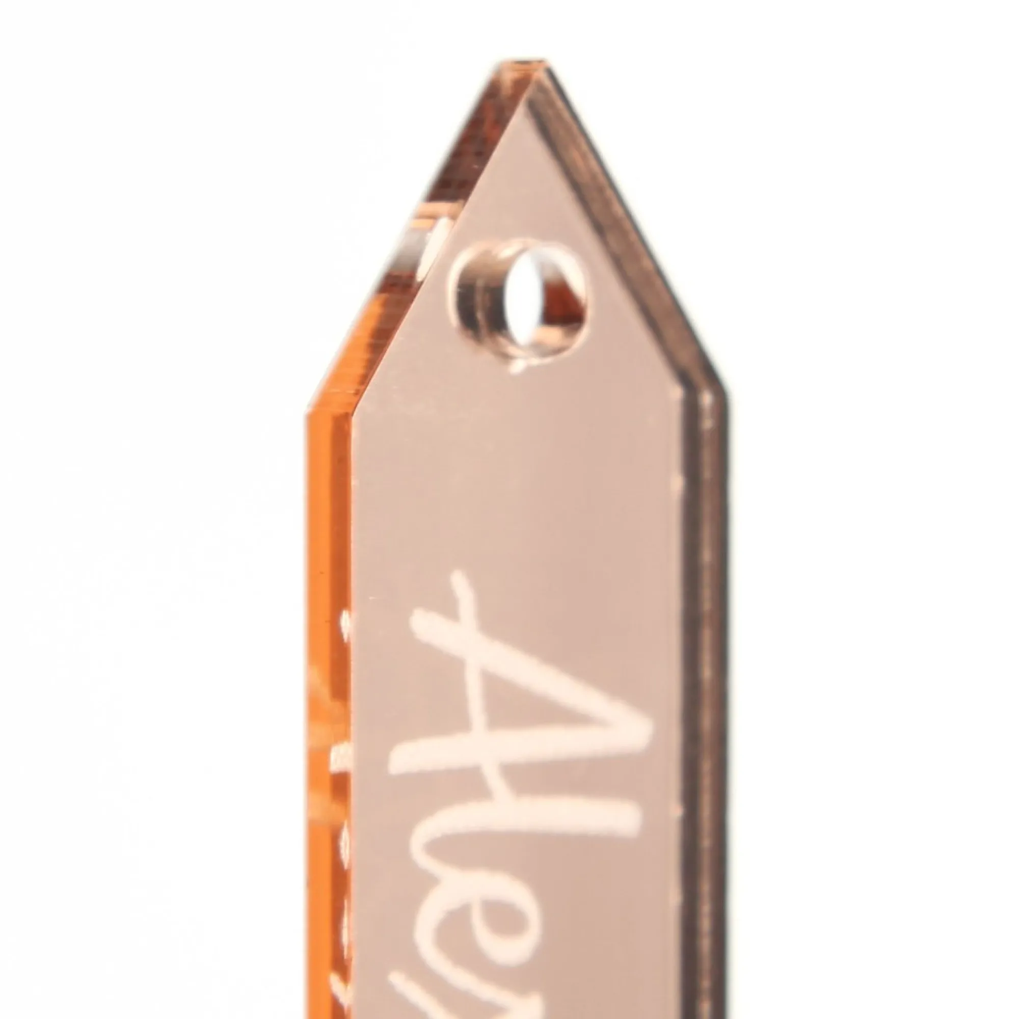 Crafted From Elegant Mirror Acrylic, This Set Features 6 Personalised Tags Laser Etched With The Names Of Your Choice. Use Your Own Ribbon To Attach To Gifts Or Use Adhesive To Secure In Place. The Name Tags Act As A Place Setting Or Gift Tag And A Personalised Keepsake For Your Guests!