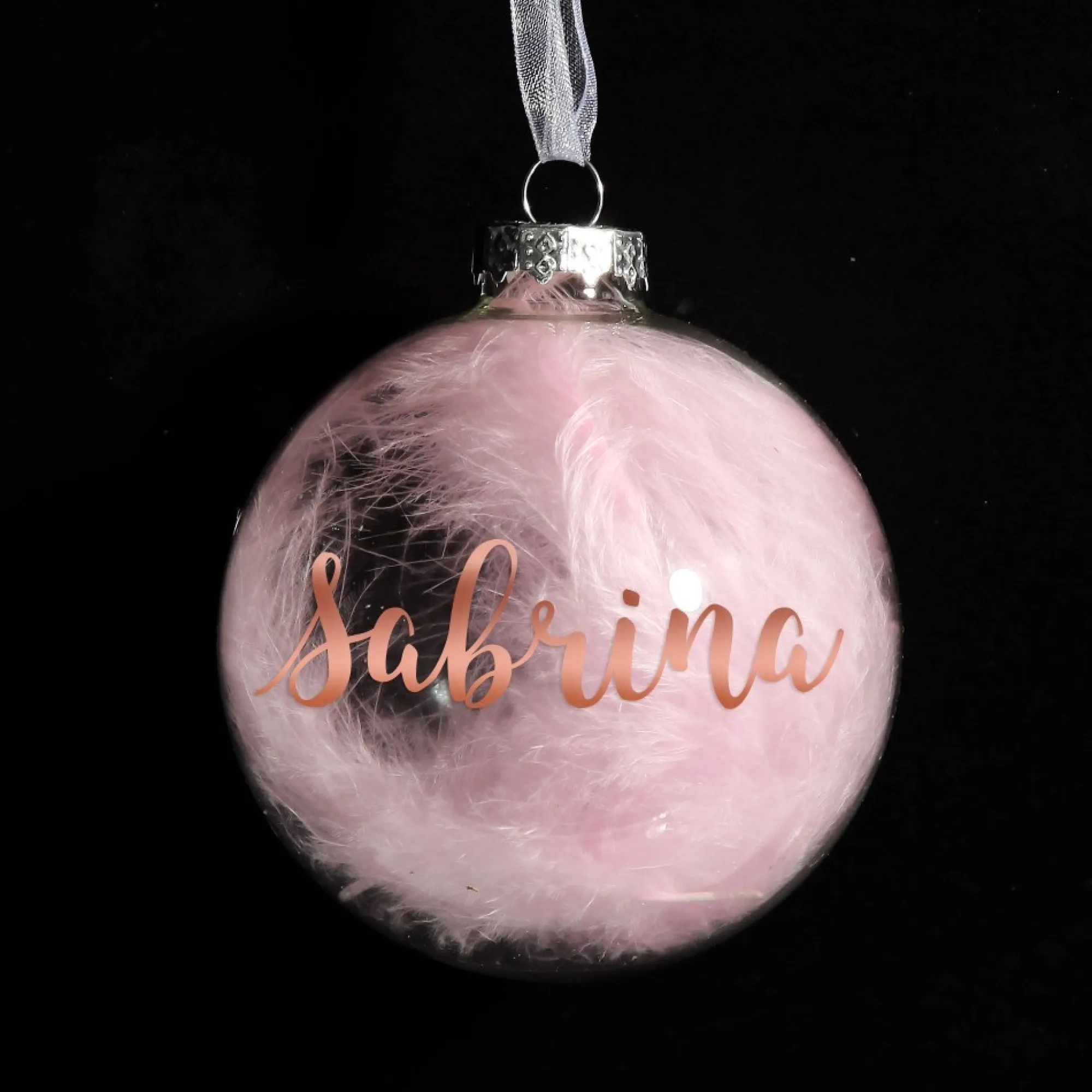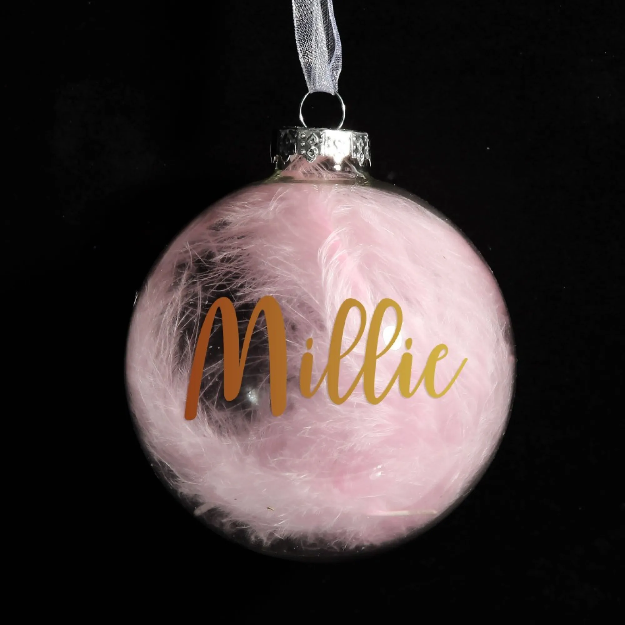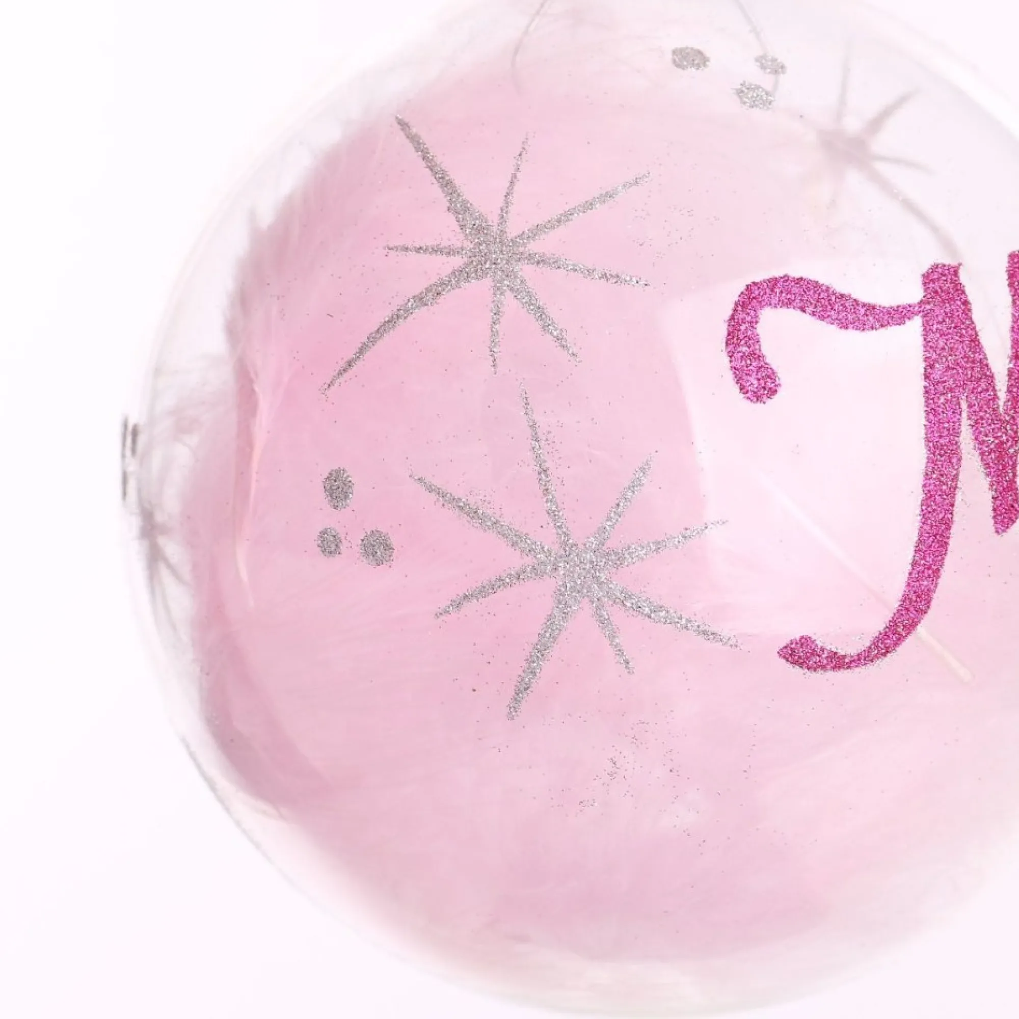 Add Colour And Elegance To Your Home With This Personalised Pink Feather Clear Glass Christmas Bauble Crafted From Seamless, High-Quality Glass, With A Shiny Clear Finish, This Bauble Is Filled With Delicate And Exquisite Pink Feathers. Featuring A Silver Metal Top And Elegant Ribbon, This Bauble Is Ready To Hang On Your Christmas Tree Or On One Of Our Chrome Display Hangers.
