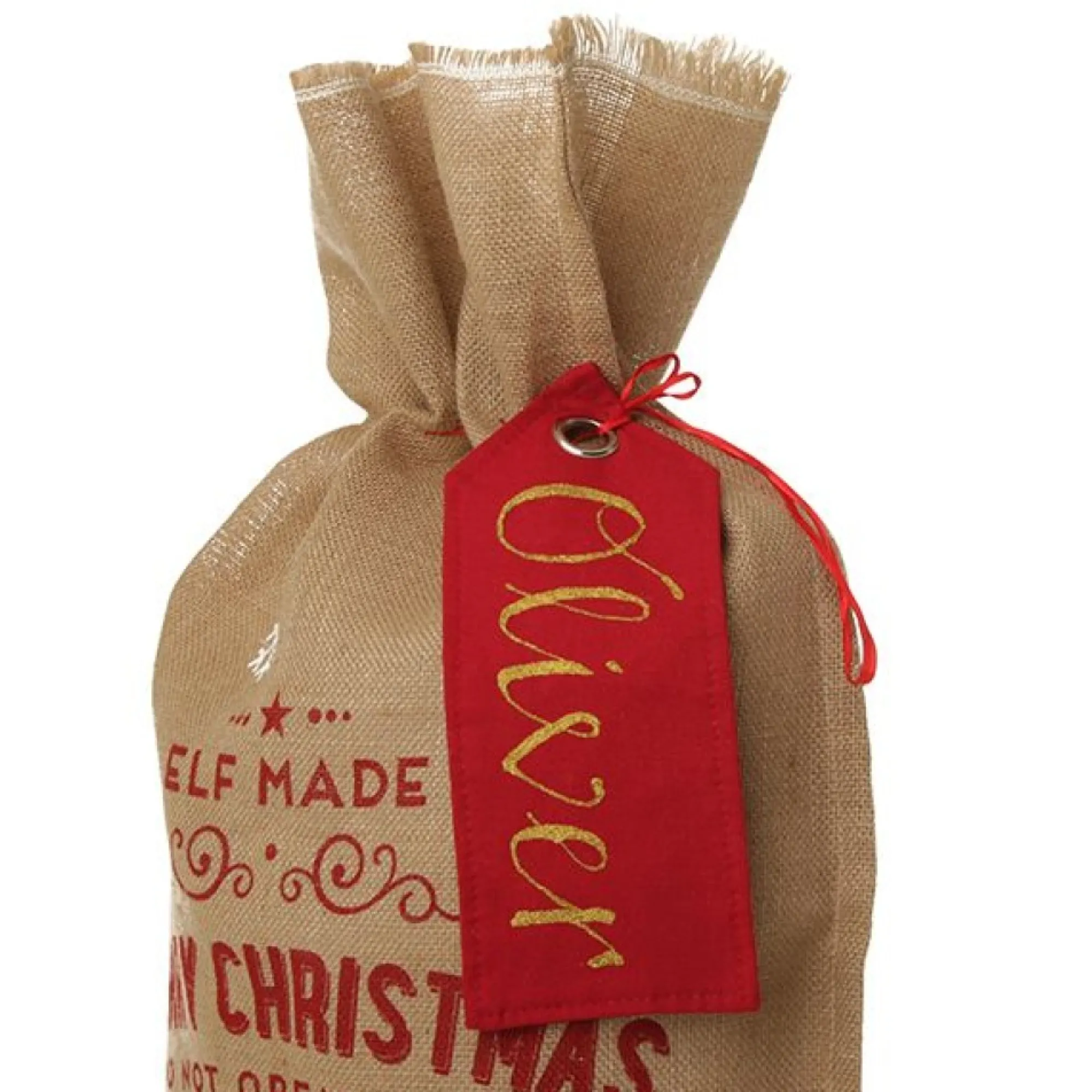 Create Memorable Keepsakes With This Personalised Red Linen Santa Sack Tag.