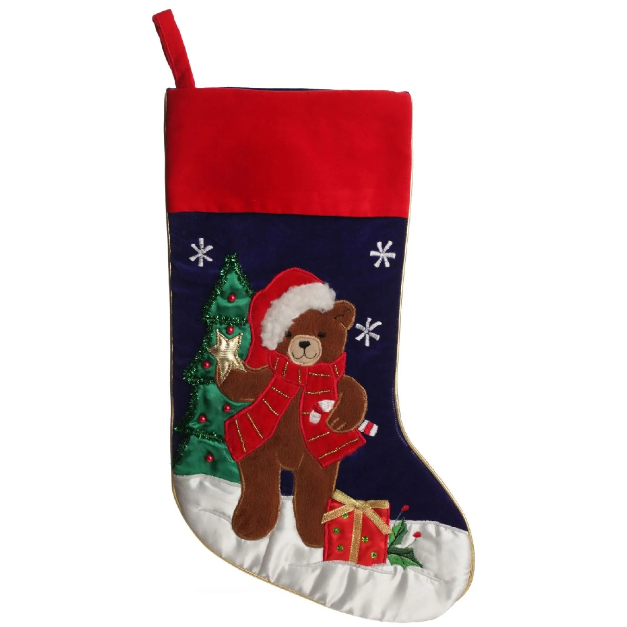 Make Fun And Magical Memories This Year With A Personalised Teddy Bear Christmas Stocking. Made From A Combination Of Lush Velvet, Satin And Fluffy Fabrics, This Stocking Features An Appliqued Teddy Bear With Tinsel And Sequins And Comes Ready To Hang On Your Mantel. Simply Use One Of Our Weighted Stocking Hangers To Display In Your Home. Popular For Children Of All Ages Or As Part Of A Set For The Whole Family Using Our Other Traditional Velvet Stocking Designs. Available In Santa, Reindeer, Snowman, Dog, Cat Designs. Create A Gorgeous Matching Set For Your Family! Personalised Stockings Add A Unique And Personal Touch To Your Home And Make Excellent Gifts For Friends And Family! Add Them To Your Mantel Each Christmas To Create A Gorgeous Traditional Display And Even Fill Them With Little Treats And Gifts As A Surprise On Christmas Morning! This Teddy Bear Stocking Is Perfect For A Magical Christmas Morning, Or Traditional Christmas Theme With Red, Green, Gold, And Silver Tones. Bring Christmas Cheer To Your Home Of Spread Love To Friends And Family With This Personalised Teddy Bear Christmas Stocking.