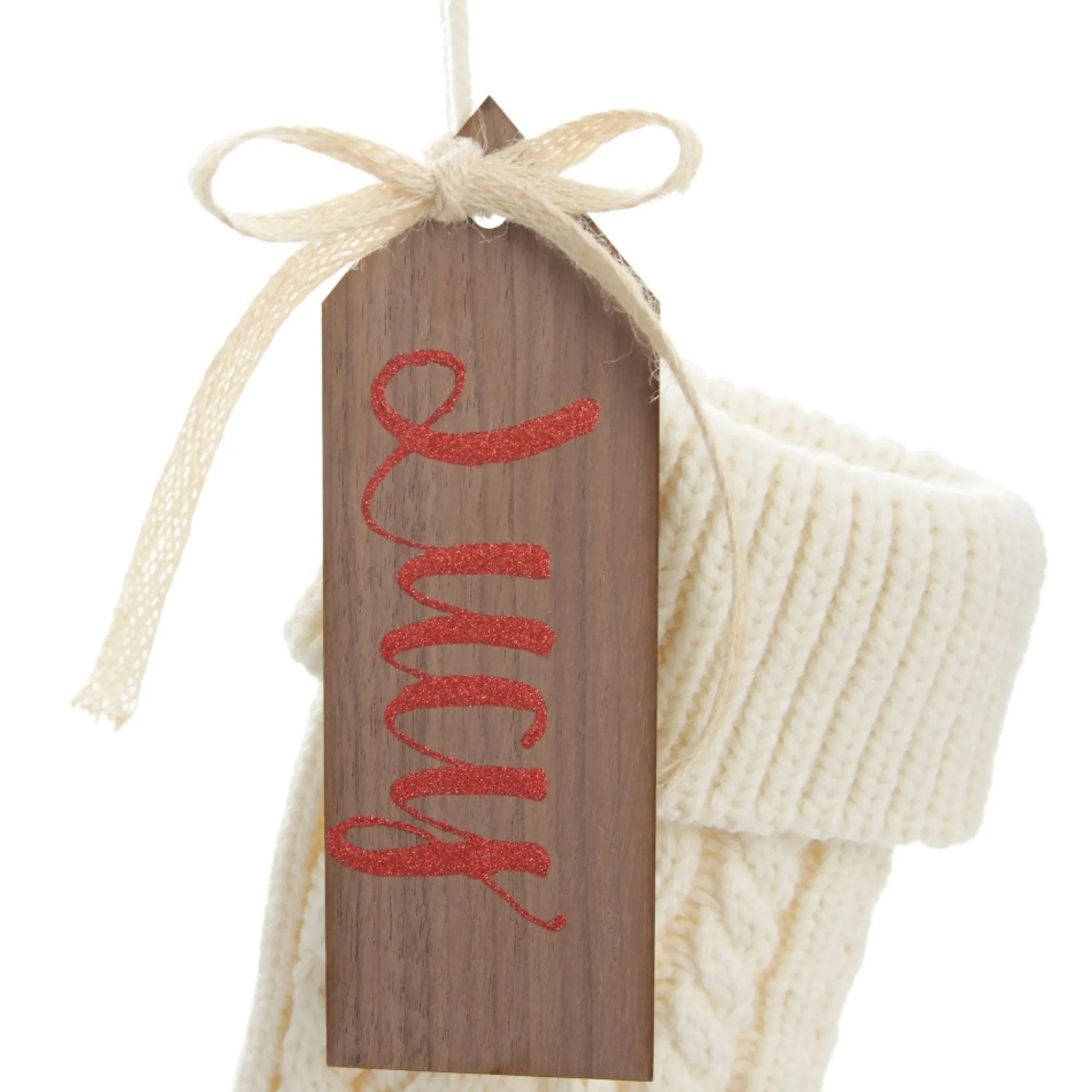 This Stocking Is Personalised On A Unique Wooden Gift Tag That Has The Name Of Your Choice Written In Our Unique Style Of Glitter Calligraphy. The Tag Can Be Easily Hung On The Stocking With Ribbon For A Personalised And Unique Effect.