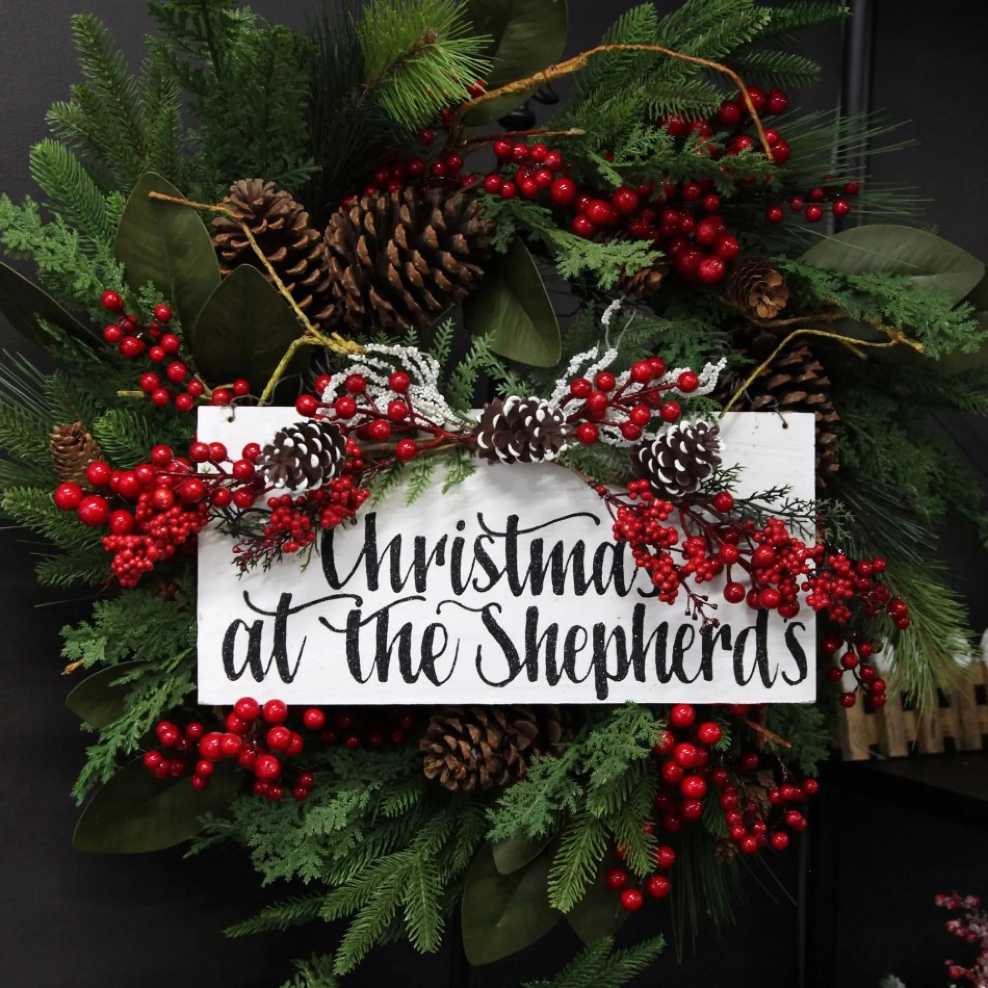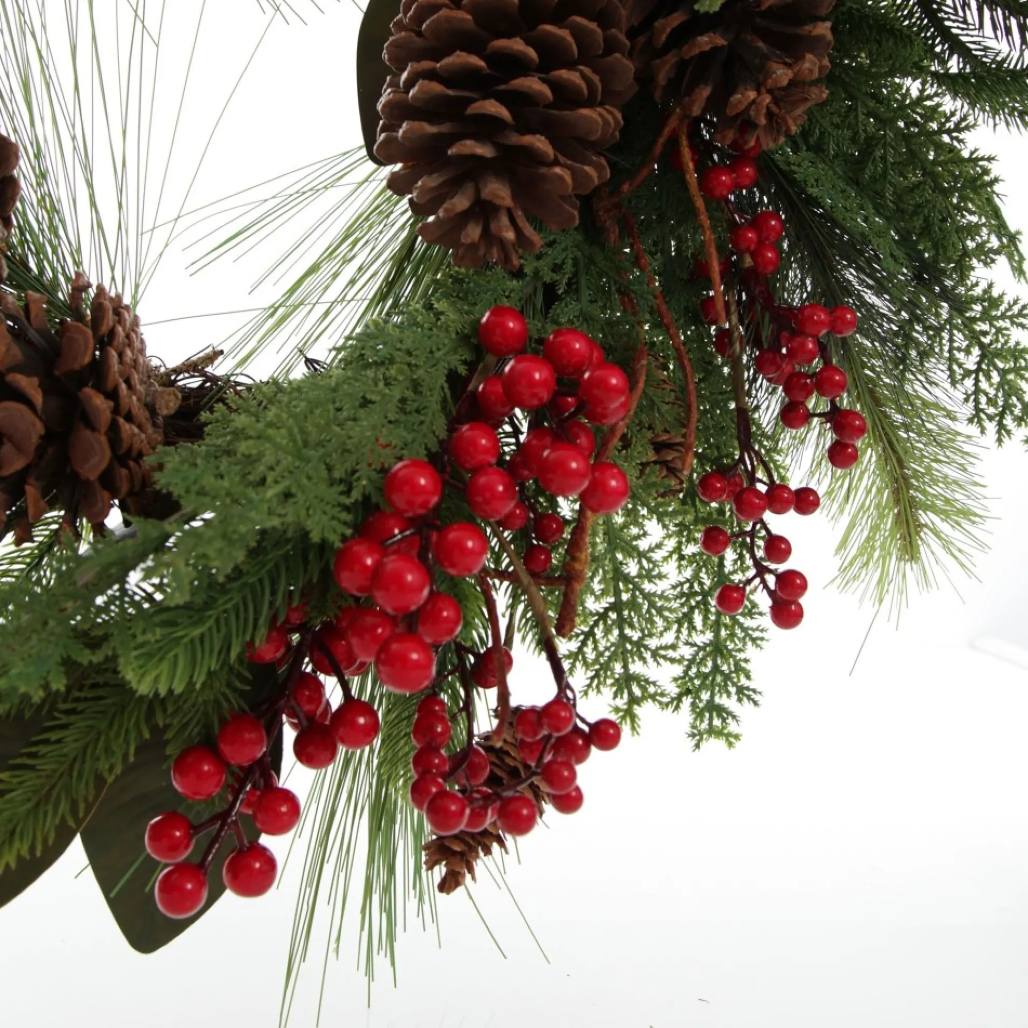 Pinecone and Red Berry Mixed Leaf Christmas Wreath Clearance