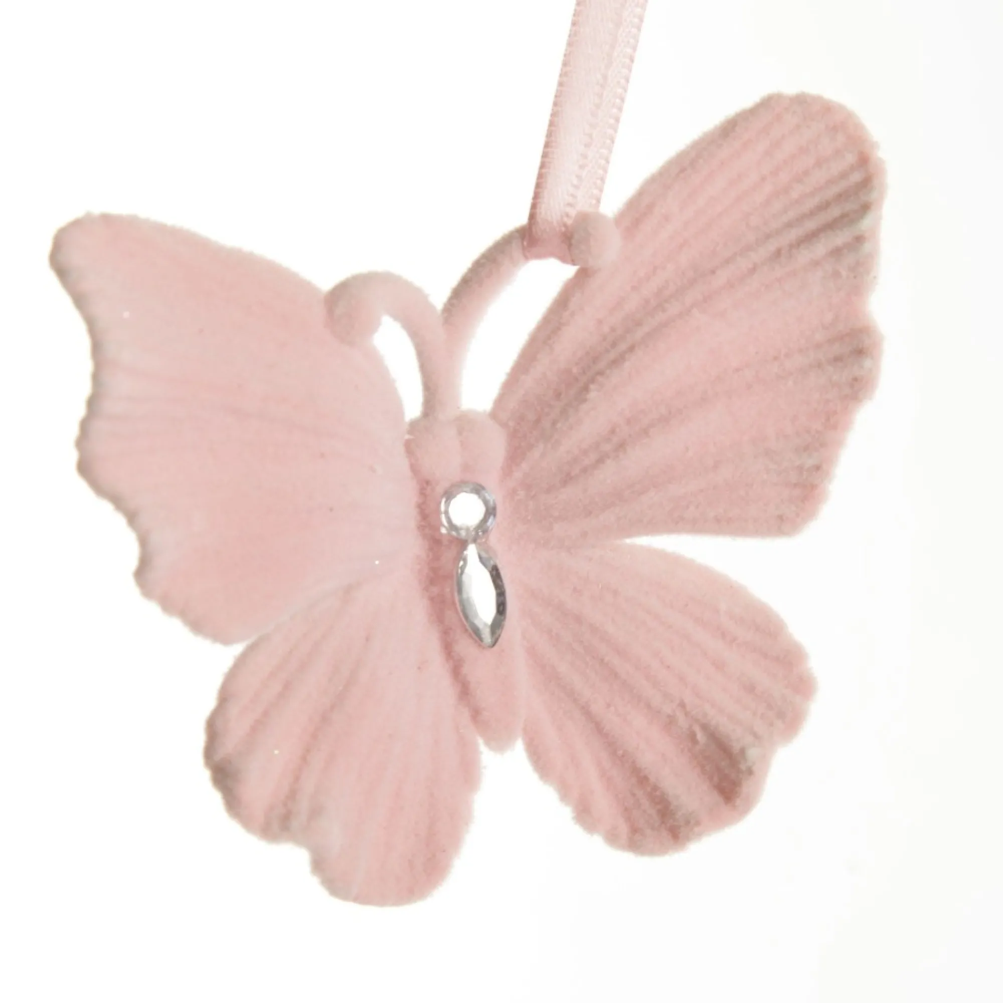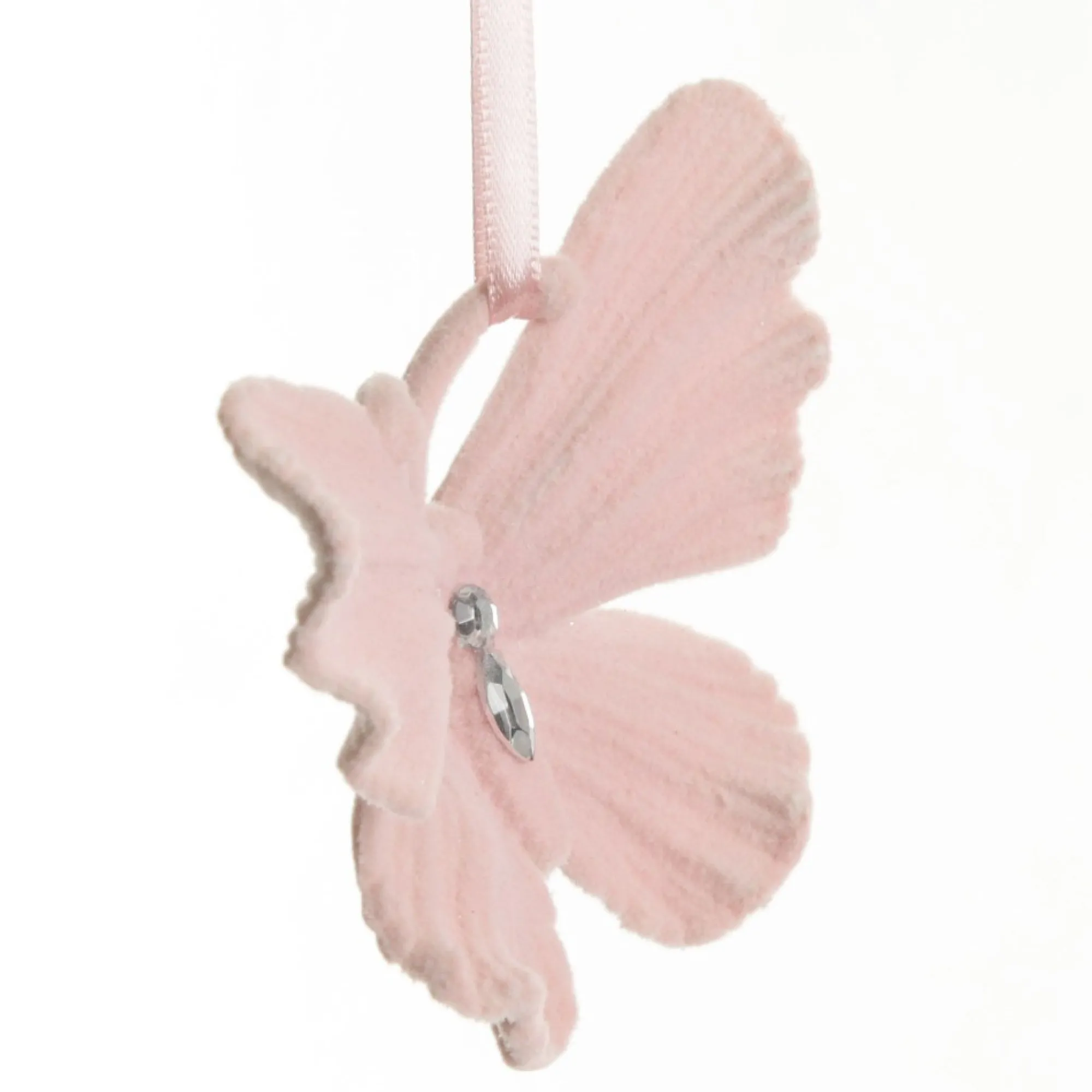 Add Whimsical Elements To Your Festive Decor With This Pink Flocked Butterfly Tree Decoration. Crafted From Lightweight Materials With A Unique Soft Flocked Exterior, This Butterfly Features Textured Elements And A Silver Jewel Embellishment. A Ribbon Is Attached For Easy Hanging On Your Christmas Tree. Hang This Butterfly Onto Your Christmas Tree Or Use To Decorate Garlands, Wreaths, Floral Arrangements And More To Create A Unique And Eclectic Display. The Butterfly Could Even Be Used As A Gift Topper Or Embellishment For Table Place Settings At Your Christmas Feasts. This Butterfly Is Perfect For A Unique Pink Christmas Dreams Decor Theme Combining An Assortment Of Pink And Sage Green Tones To Create A Seamless And Sophisticated Display. Stray From The Traditional To Create A Stunning And Unique Display In Your Home.