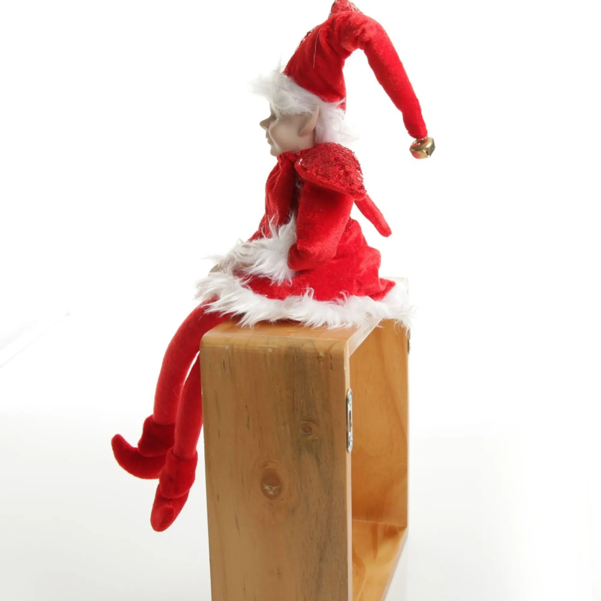 Create A Magical Festive Display With Our Red Elf Sitting Christmas Ornament. Our Elf Is Well-Dressed In A Vibrant Red Tunic Or Coat Outfit With A Jingle Bell Hat, And Classic Elf Collar With Sequin Panels And Fur Trim. Red Tights And Boots Finish The Look.