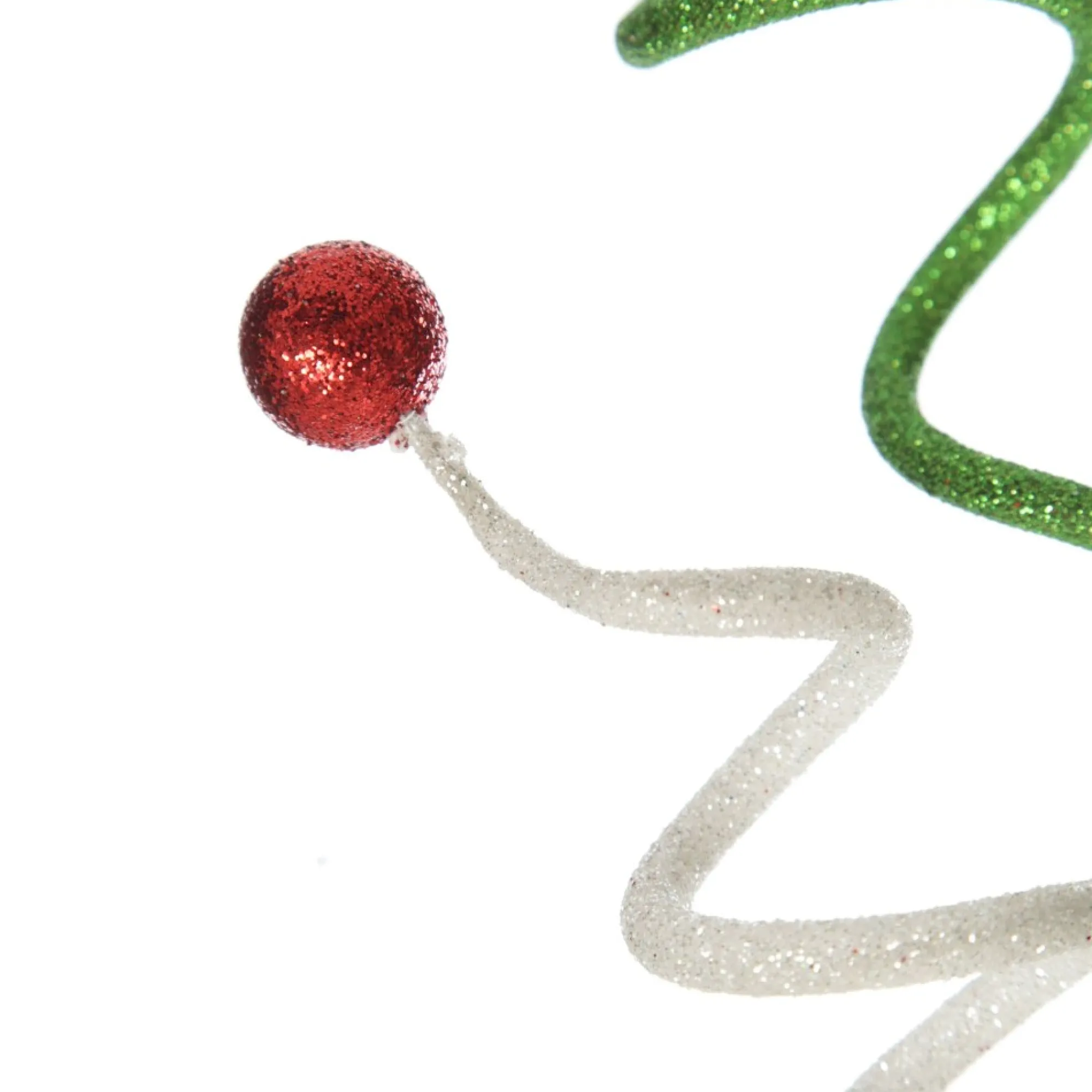 This Red, Green And White Glitter Curly Christmas Pick Is Sure To Bring Delightful, Whimsical Festive Charm To Your Arrangements. With A Flexible And Durable Stem That Makes It Perfect For All Your Craft And Decor Needs, This Pick Features A Collection Of Exciting Red, Green, And White Glitter Curls With Glitter Ball Tips.