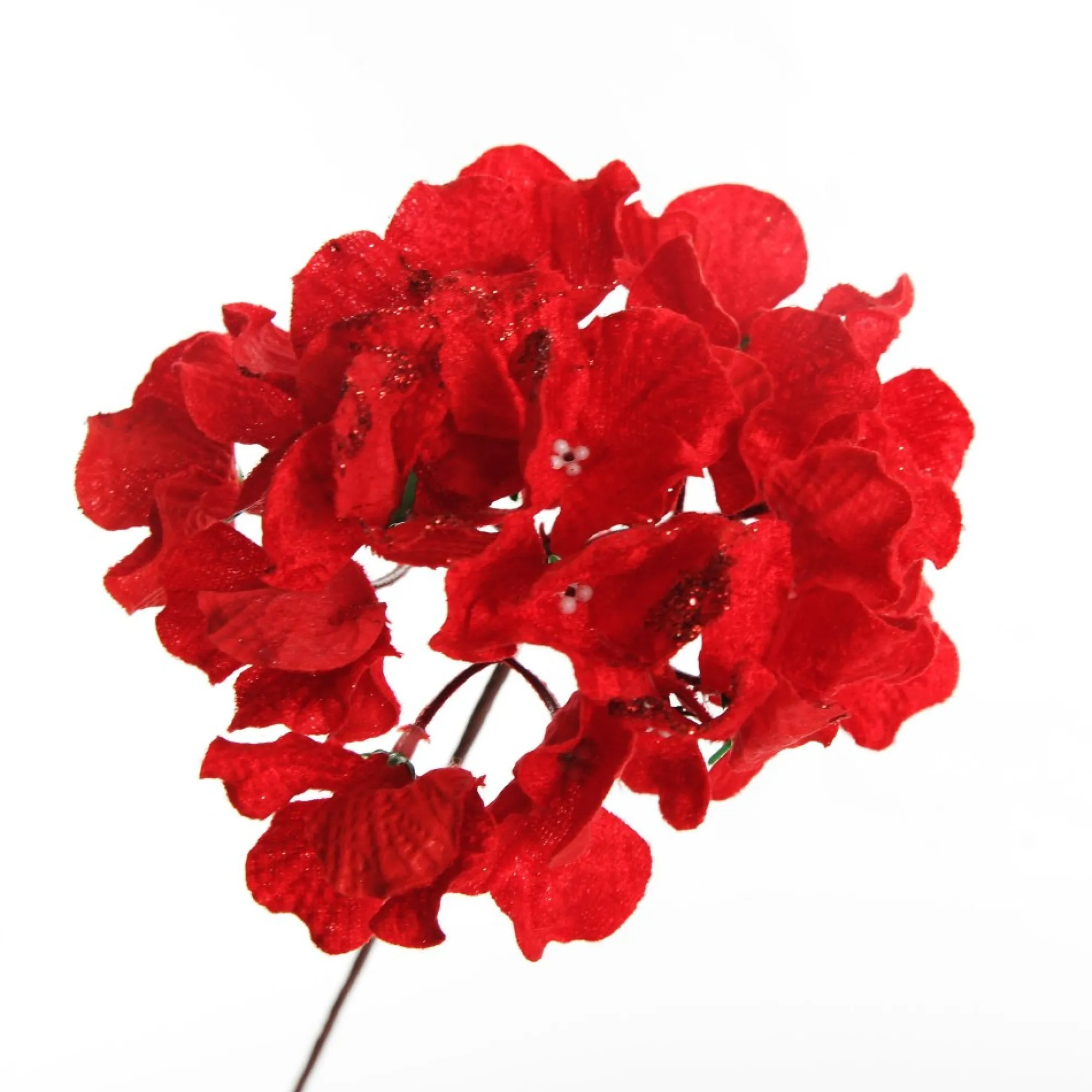 This Red Hydrangea Flower Stem Is The Perfect Addition To Your Christmas Floral Decor. Crafted With High-Quality Synthetic Materials, This Faux Flower Features Red Petals With Intricate Textures And Stunning Glitter Highlights. With A Durable And Flexible Stem, This Flower Is Suitable For All Your Craft And Decorating Needs. Cut It Down To Your Desired Length Or Simply Bend And Adjust The Stem For Your Need. Faux Flower Stems Are The Perfect Choice For Embellishing Your Tree And Creating A Unique Display. Place Them On Your Tree To Fill In Gaps And Create A Lush And Exciting Effect. Combine Faux Flowers With Other Foliage And Sprays To Create An Arrangement In A Vase Or Use Them To Embellish And Create Your Own Unique Garlands And Wreaths. The Possibilities Are Endless! This Gorgeous Colour Is Perfectly Suited.