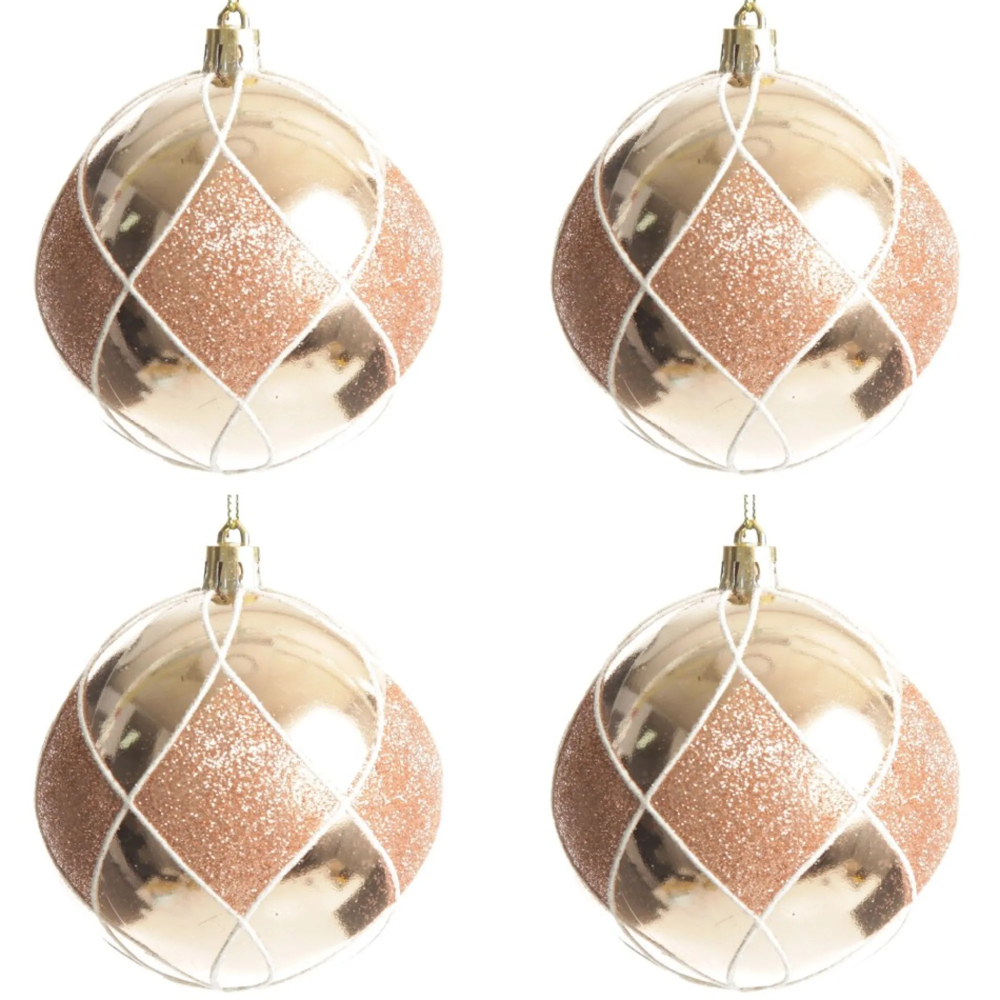 Brand: Rose Gold Diamond Christmas Baubles - Set Of 4