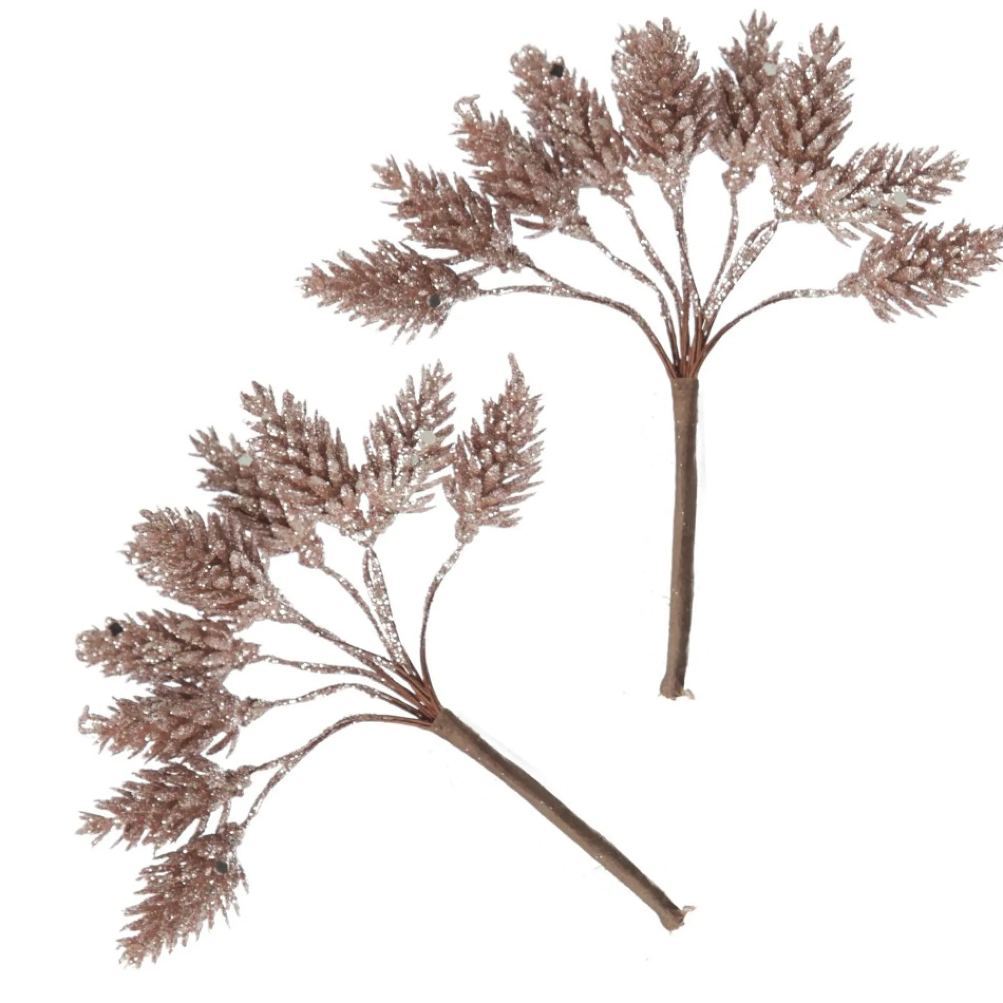 These Rose Gold Glitter Pinecone Clusters – Set Of 2 Are Perfect For Your Christmas Crafting Needs. Sold In A Set Of 2. These Pinecone Clusters Have A Flexible And Durable Stem And Feature A Collection Of Miniature Pinecones Coated In Delightful Rose Gold Glitter. 9 Pinecones Per Bunch. Use These Rose Gold Glitter Leaf Picks For All Your Christmas Crafting And Decorating Purposes They Make An Excellent Addition To Wreaths, Garlands, And Christmas Trees. They Also Make A Lovely And Unique Finishing Touch For Presents!