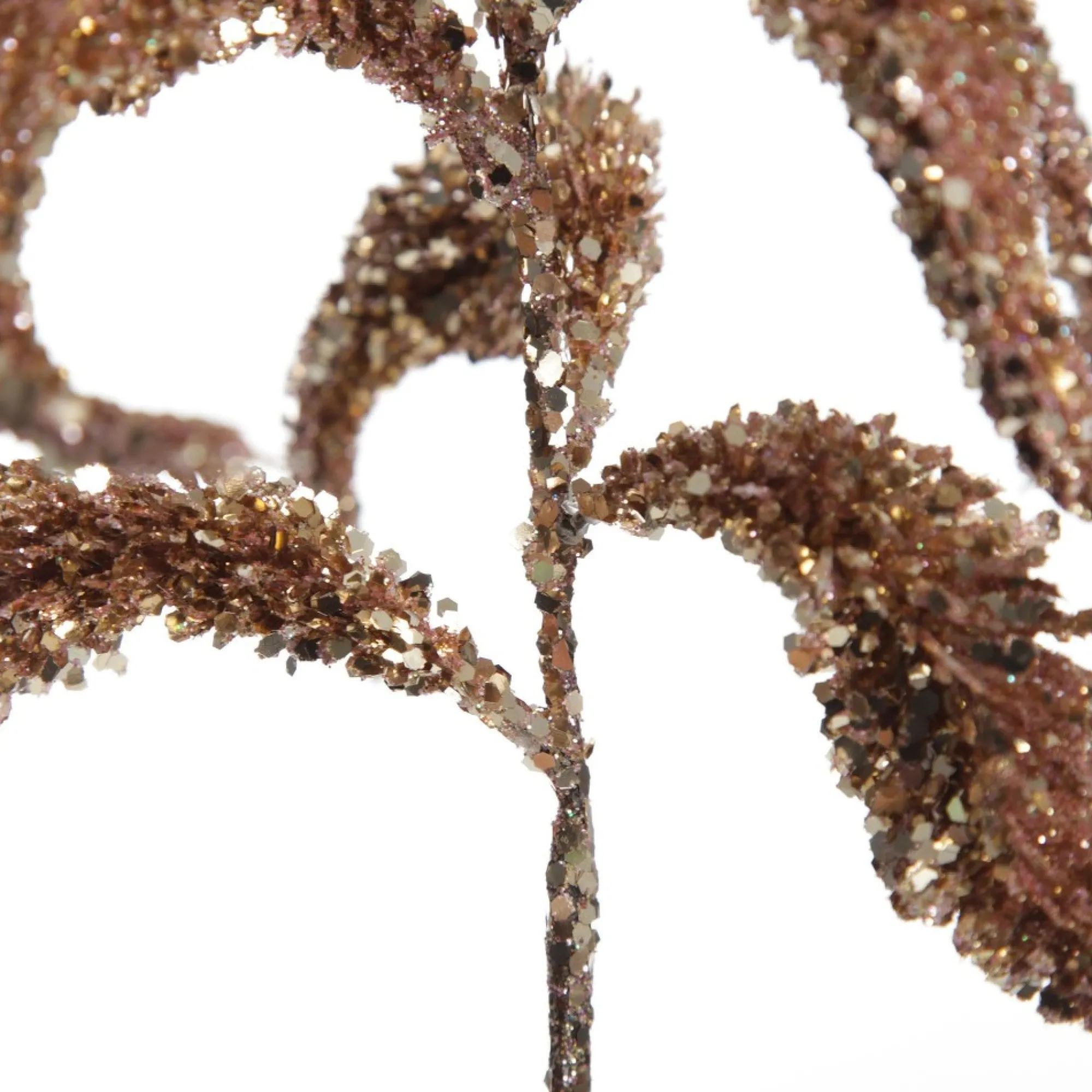 This Rose Gold Sequin Spikey Leaf Spray Will Infuse Your Christmas Display With Unique Sparkle And Glamour. With A Flexible And Durable Stem For Easy Placement, This Spray Features A Collection Of Intricate Curved Spikey Leaves With A Gorgeous Textured Coating Of Rose Gold Glitter And Sequins. A Stylish Statement Piece To Add To Any Floral Arrangement. Unique Sprays Are An Inexpensive And Versatile Option To Use For A Variety Of Crafting And Decorating Endeavours. Use To Embellish Your Christmas Tree, Decorate Your Own Garland And Wreaths, Or Combine With Other Sprays And Foliage To Create Your Own Floral Arrangement In A Vase. You Could Even Create An Extravagant Tree Topper With This Spray. The Luxe Rose Gold-Tone Is Perfect For A Feminine And Pastel Sugar Plum Or Boho Glam Christmas Decor Theme Combining Neutral Tones, Pinks And Rose Gold With Glitter And Glass To Create A Unique, Luxurious Display.
