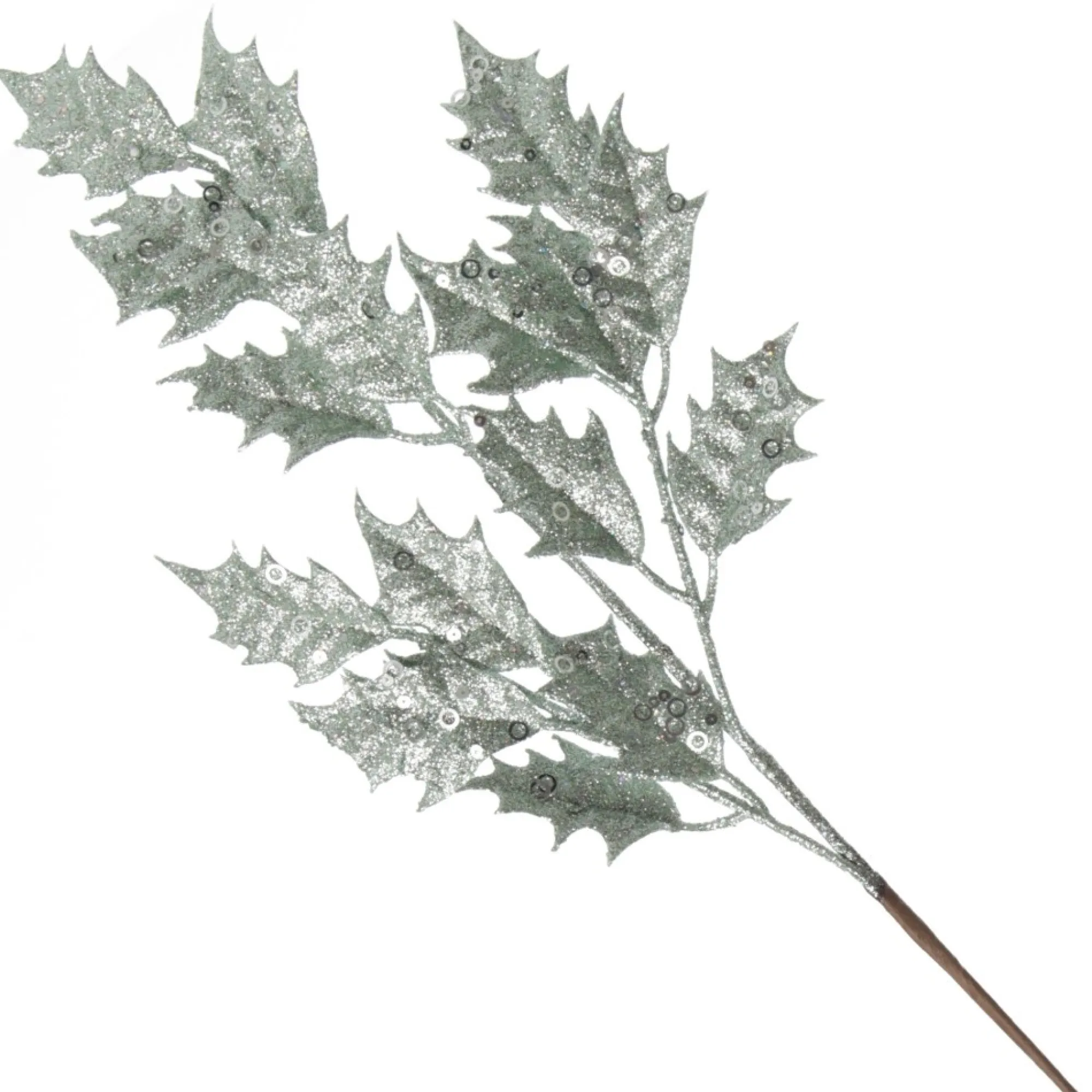 Enhance Your Christmas Floral Displays And Decor With This Sage Glitter Holly Leaf Spray. This Pick Has A Flexible And Durable Stem For Easy Placement And Features A Collection Of Gorgeous Sage Green Glittered Holly Leaves Embellished With Silver Sequins. A Stunning Twist On The Traditional Holly Plant That Would Make An Excellent Accent For Any Christmas Floral Arrangement. Sprays Are An Inexpensive And Versatile Option To Use For A Variety Of Crafting And Decorating Endeavours. Use To Embellish Your Christmas Tree, Decorate Your Own Garland, Combine With Other Sprays And Foliage To Design, And Create Your Own Floral Arrangement And So Much More! Use The Sprays As A Whole Or Cut Them Down As Needed. A Great Option For A Modern And Sleek Silver And Sage Christmas Theme Paired With Silver, White, Sparkling Decor, And Unique Elements. Create Wonderful Festive Displays To Celebrate The Most Magical Time Of The Year With This Beautiful Sage Glitter Holly Spray.
