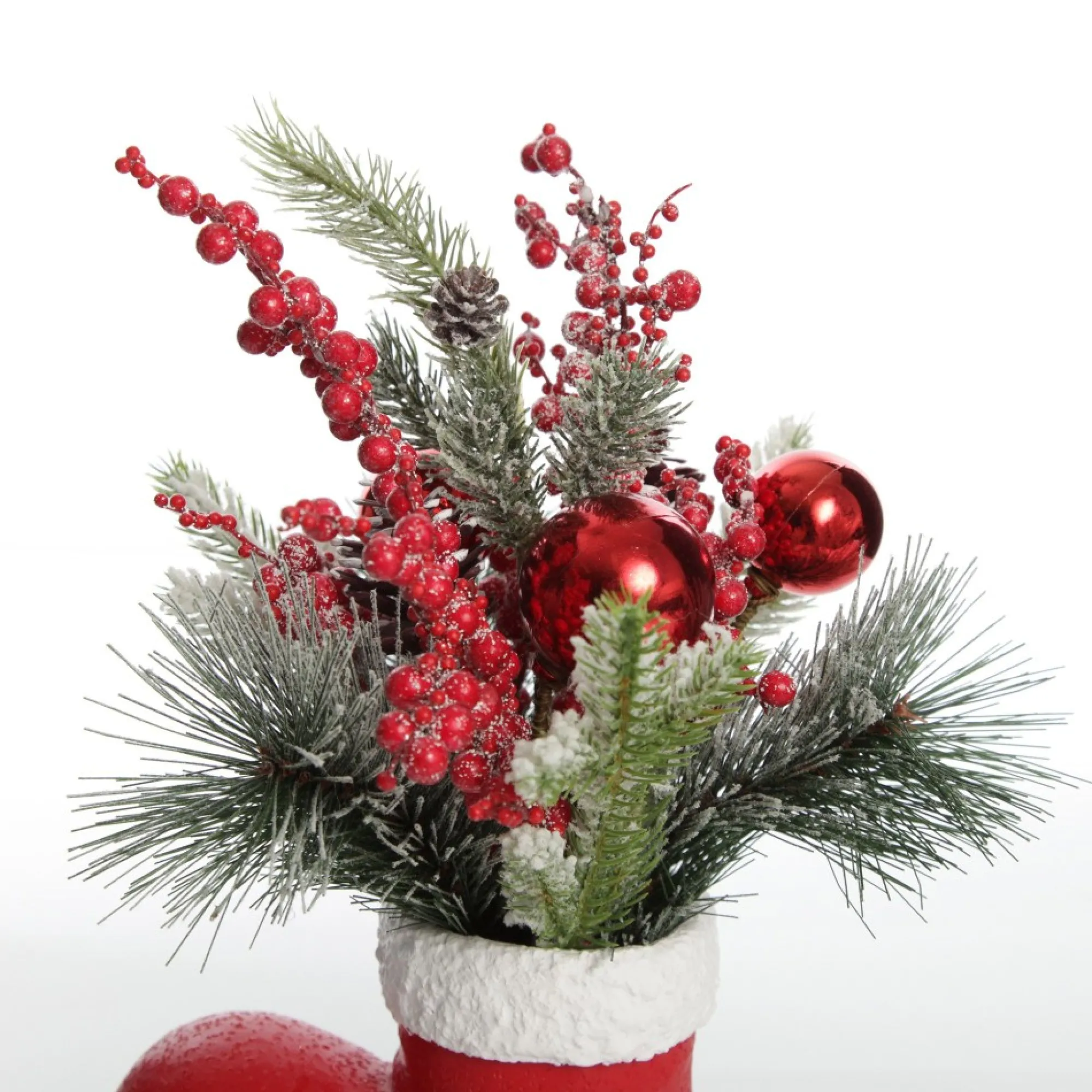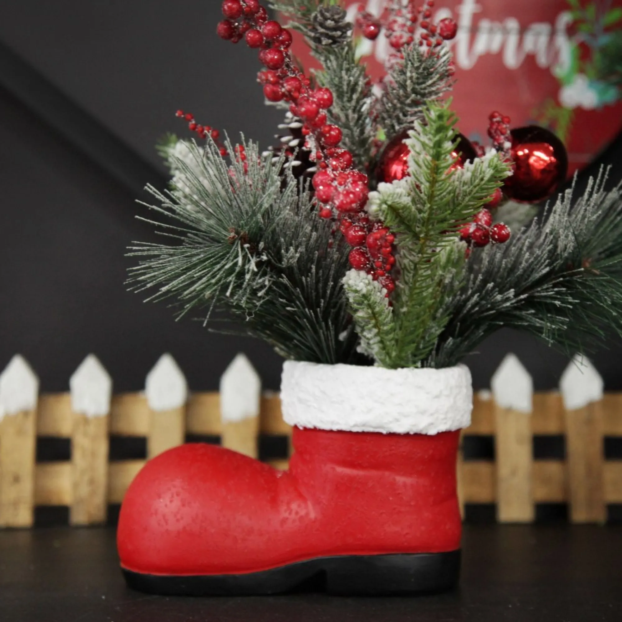 Bring Unique And Exciting Festive Decor Into Your Home With This Santa Boot Christmas Ornament With Frosted Pine, Pinecone And Berries. Crafted From Durable Polyresin, This Ornament Features A Red, Textured Santa Boot With A Black Sole And White Trim Filled With A Beautiful Festive Arrangement Of Frosted Pine Foliage With Pinecones, Berries, And Red Bauble Embellishments. What A Unique And Quirky Decor Piece To Infuse Your Home With Christmas Magic. Bring This Ornament Out Each Year When Decorating For The Festive Season. Display On A Table As An Exciting Centrepiece Or On Any Surface As Part Of A Festive Vignette. Decorating With Quirky Items Is The Perfect Way To Create A Unique Display Like No Other. Perfect For A Traditional Nutcracker Christmas Decor Theme.