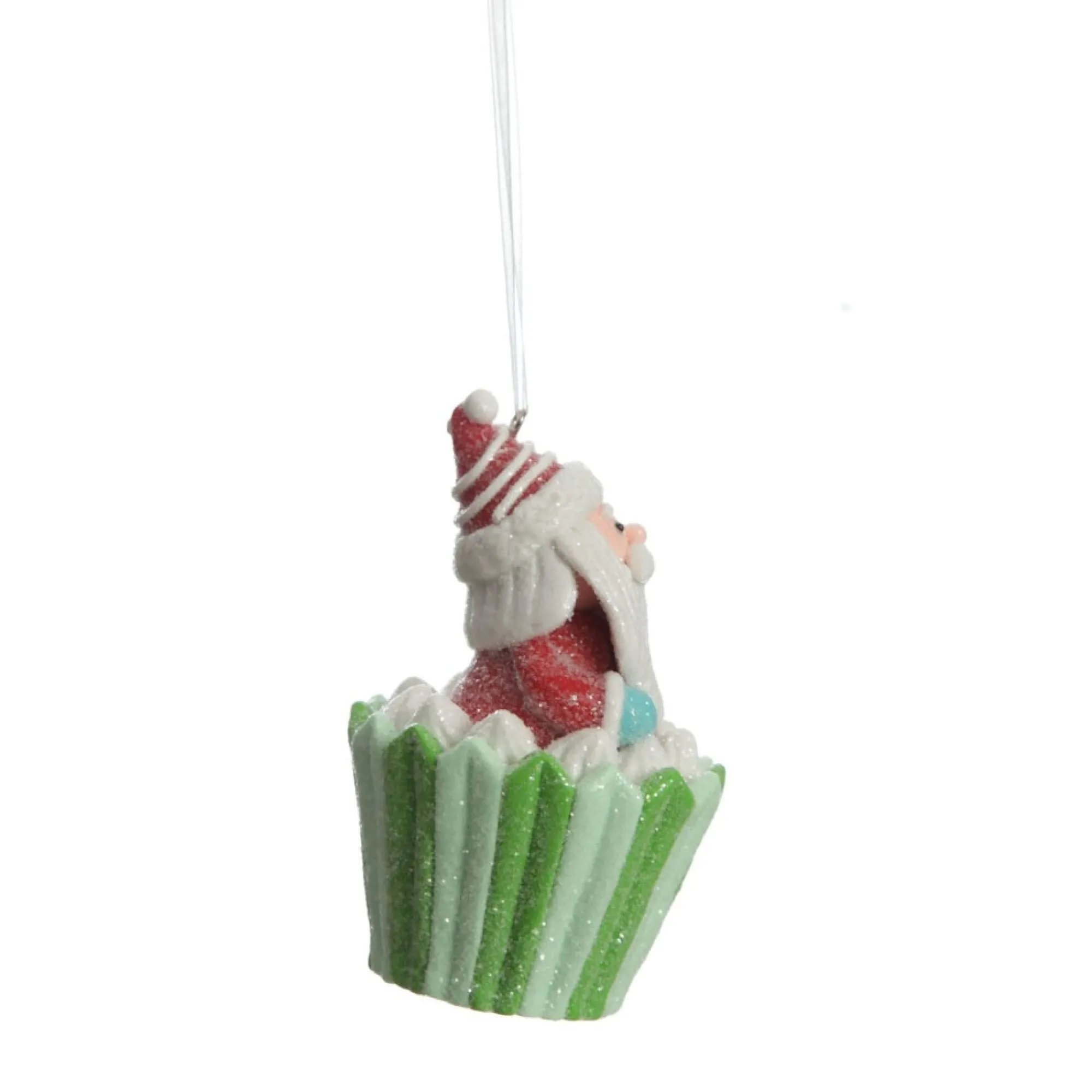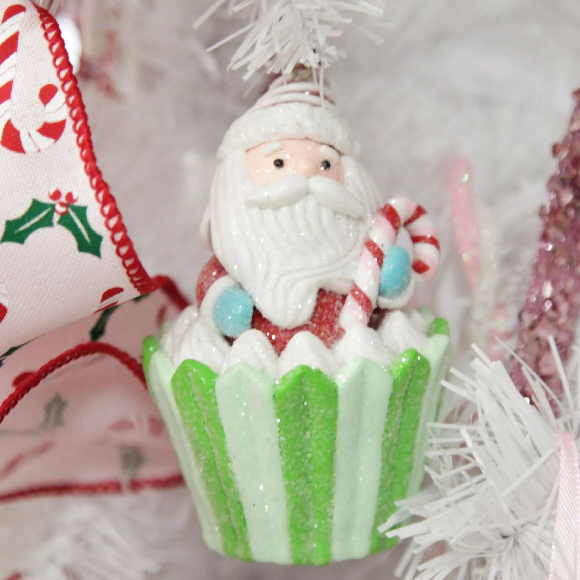 If You Love Sugar-Coated Christmas Decor, This Santa Cupcake Christmas Tree Decoration Is Perfect For You! Crafted From Durable Polymer Clay With A Glitter Glazed Finish, This Decoration Features A Green Cupcake With Adorable Santa On Top, Intricate Icing Details And Candy Cane Embellishment. This Adorable Decoration Is The Perfect Embellishment For Your Christmas Tree. Add Unique And Eclectic Ornaments To Create A Delightful Display. Perfect For A Peppermint Candy Christmas Decor Theme Paired With Vibrant Red, Green, White, And Silver Tones, Adorable Candy-Themed Decor And Glitter Galore!