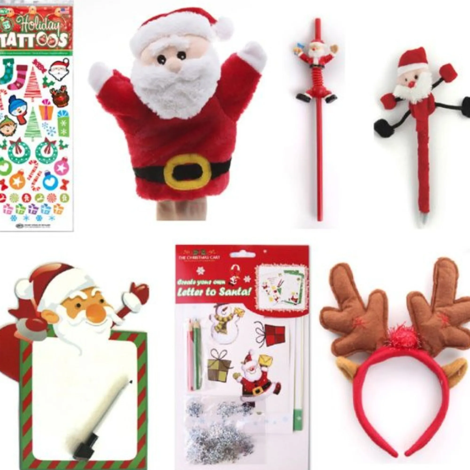 Includes Fabric Pen, Straw, Santa Plush Hand Puppet, Tattoo Sheet, Craft Kit, White Board And Christmas Headband. (Designs May Vary Depending On Availability)