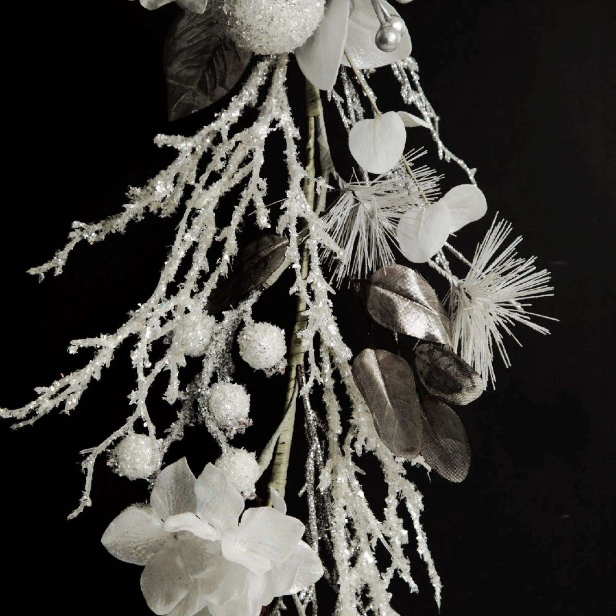 Crafted With A Durable And Flexible Base, This Garland Features A Stunning Assortment Of White And Silver Flowers, Leaves, Twigs, And Berries In A Mix Of Glitter, Metallic And Lustrous Finishes.