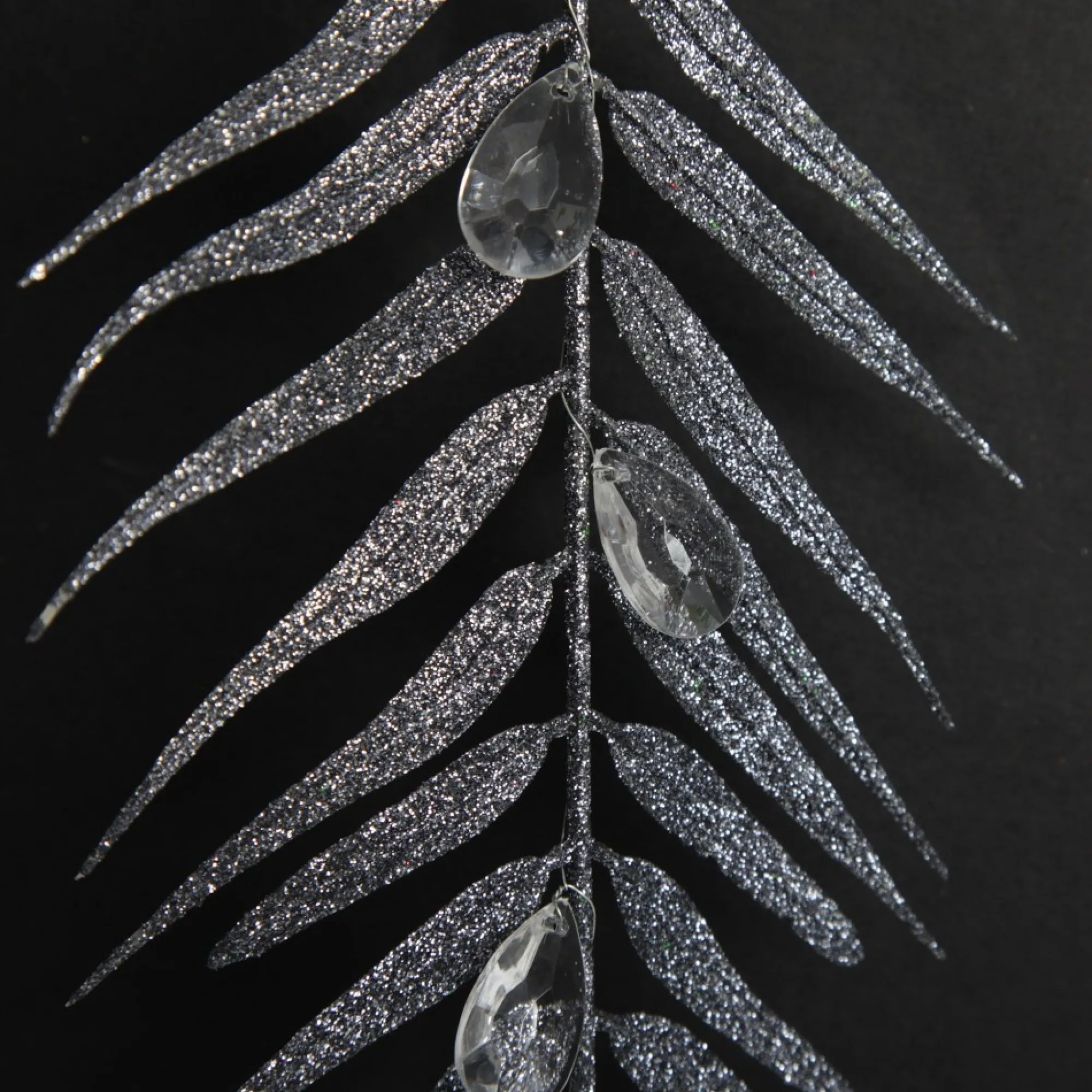 Add Elegance To Your Festive Displays With This Silver Glitter Fern And Crystal Tree Decoration. Crafted From Lightweight And Durable Materials, This Decoration Features Sleek Silver Glitter Fern Leaves With Stunning Crystal Drop Embellishments. Suave And Sophisticated, This Decoration Is The Perfect Element To Add Class To Any Display.