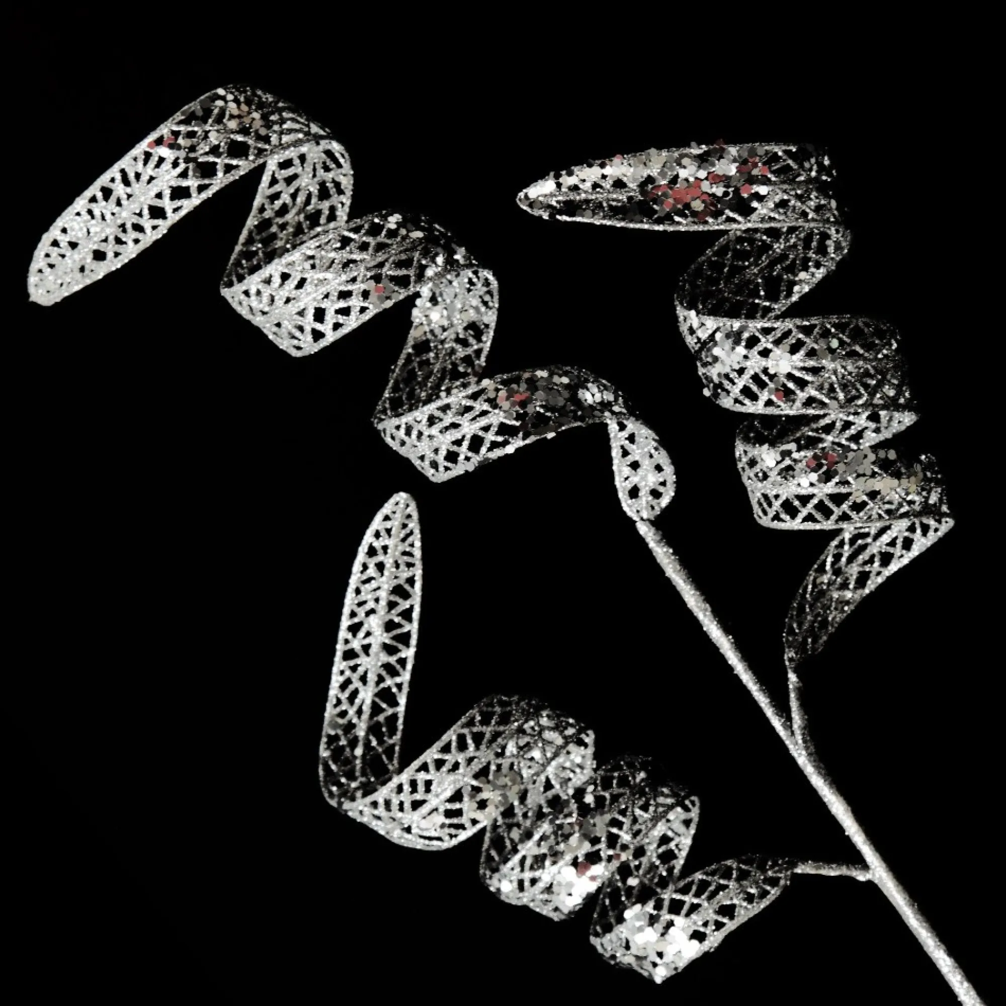 Add Something Unique To Your Christmas Displays With This Silver Glitter Swirl Christmas Pick. Featuring A Collection Of Mesh Patterns Swirls In Stunning Silver Glitter With Large Glitter Chunks For Extra Sparkle. The Flexible And Durable Stem Makes It Easy To Place And Arrange When Decorating.
