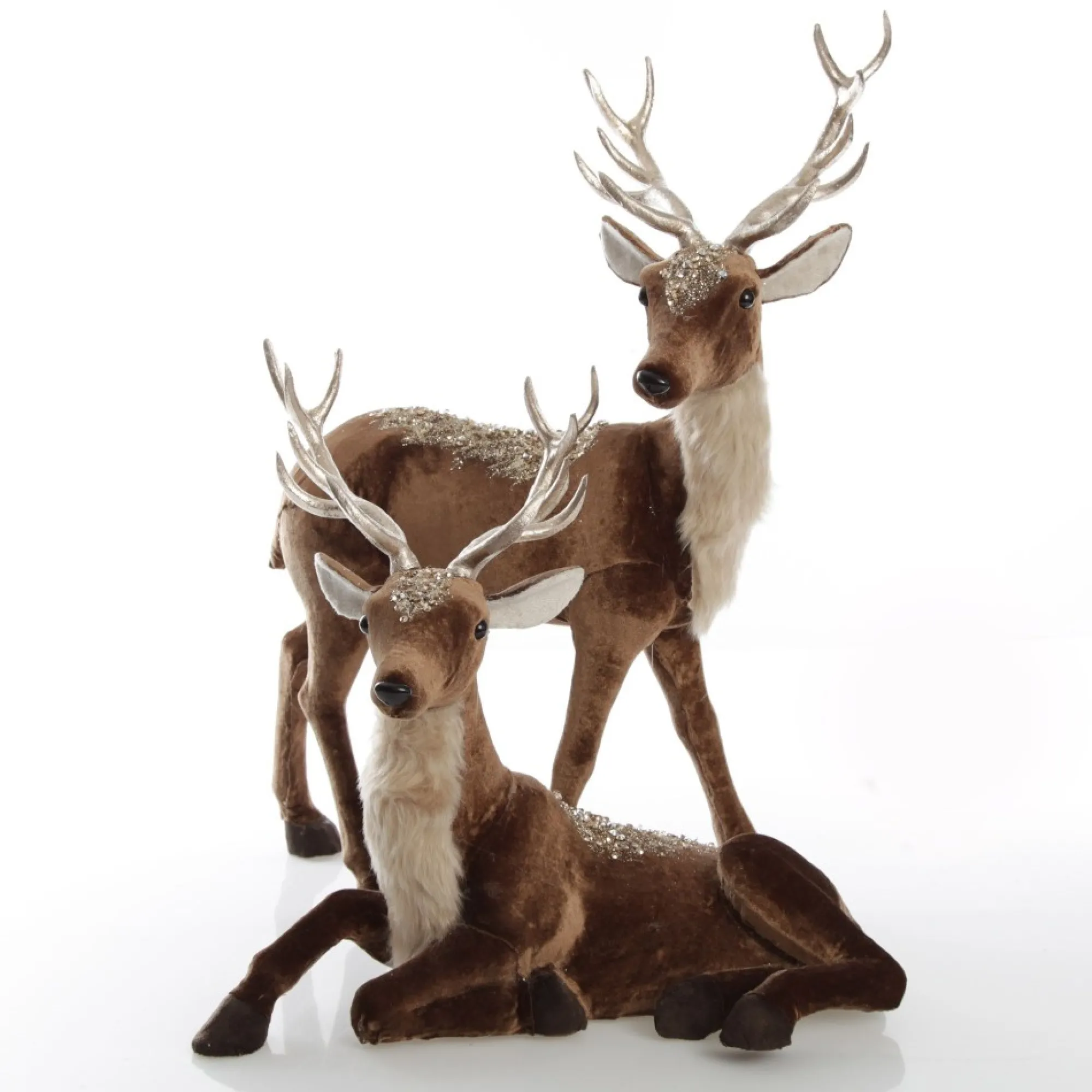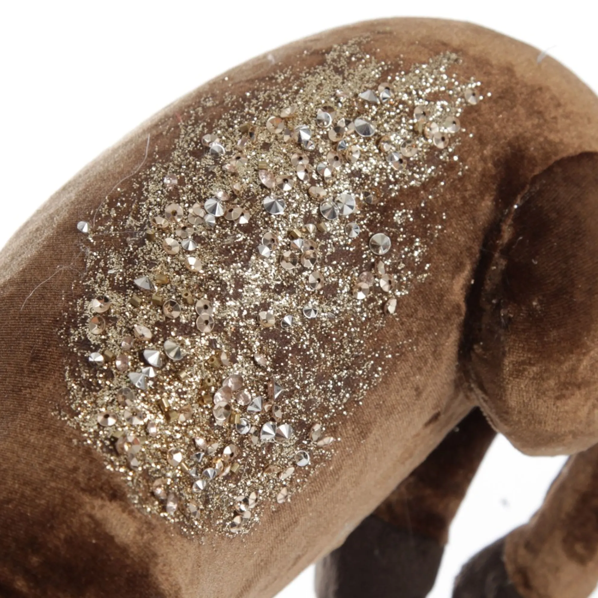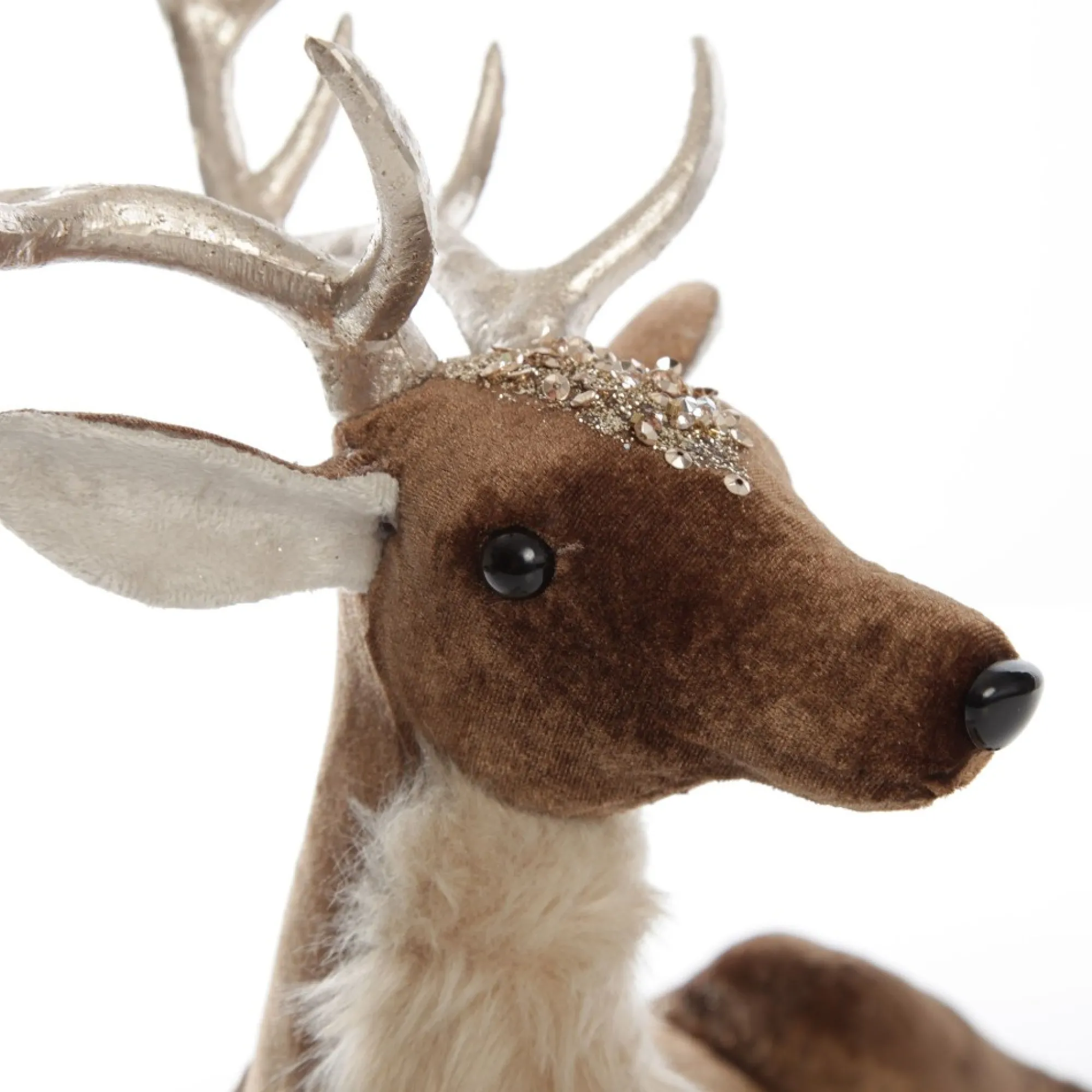 Bring Elegance To Your Festive Displays With Our Unique Sitting Velvet Chocolate Deer With Fur And Jewels. This Charming Sitting Deer Is Covered In Smooth Chocolate Velvet And Features Magnificent Glitter And Jewel Embellishments On The Back And Head. Soft Cream Fur Adorns The Chest And The Antlers Feature A Metallic Finish. Display Individually, With The Other Standing Deer In This Design, Or With A Collection Of Festive Decor And Ornaments To Create A Unique Christmas Vignette In Your Home. This Deer Is Perfect For A Boho Glam Christmas Decor Theme.