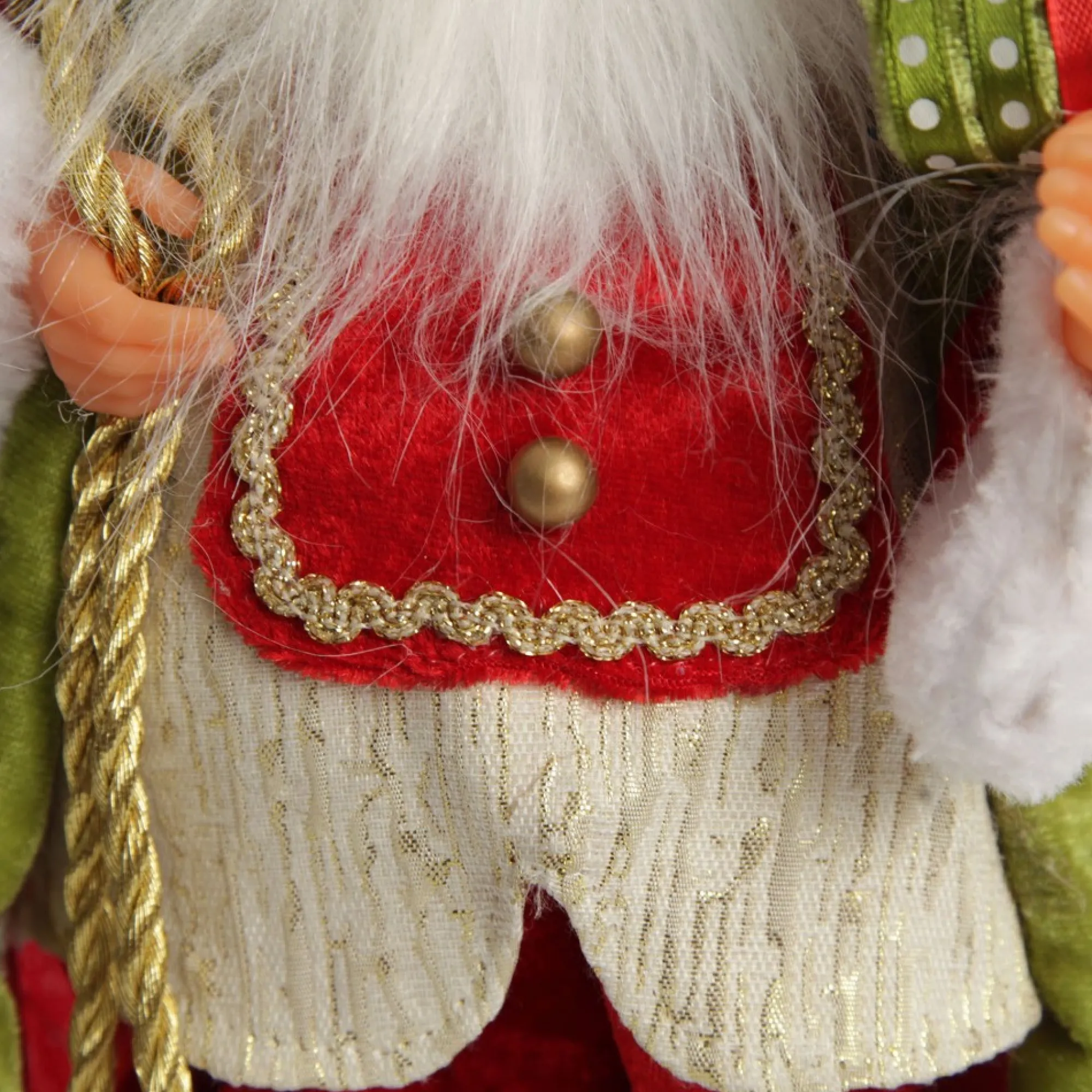 Nothing Will Bring Festive Cheer To Your Home More Than This Traditional Standing Santa Christmas Ornament. Crafted From Durable Materials And Soft Fabrics, This Cheerful Santa Ornament Features A Vibrant Red Robe And Suit With Green And Gold Trim Details, A Soft White Beard, A Traditional Jingle Bell Hat, And Is Carrying Presents And A Sack Over His Shoulder.