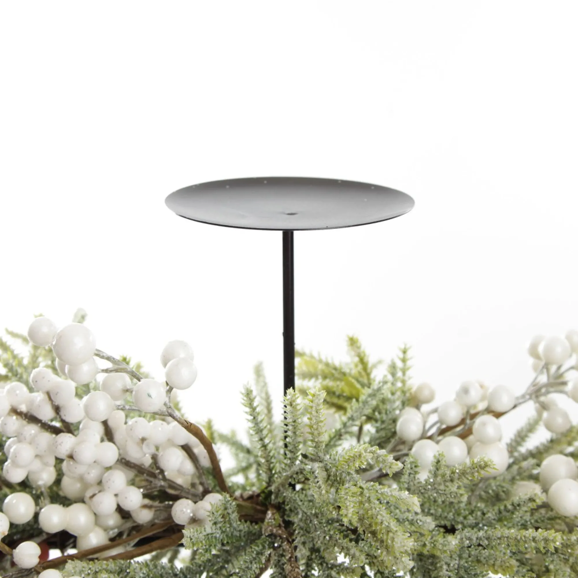 Make A Statement And Celebrate In Style With This White Berry And Frosted Leaf Christmas Table Centrepiece Candle Holder. Crafted With A Durable Metal Base Covered In Lush Green Frosted Foliage, This Centrepiece Features Delightful White Berry Cluster Embellishments And Three-Tiered Metal Candleholders Extending From The Metal Base.