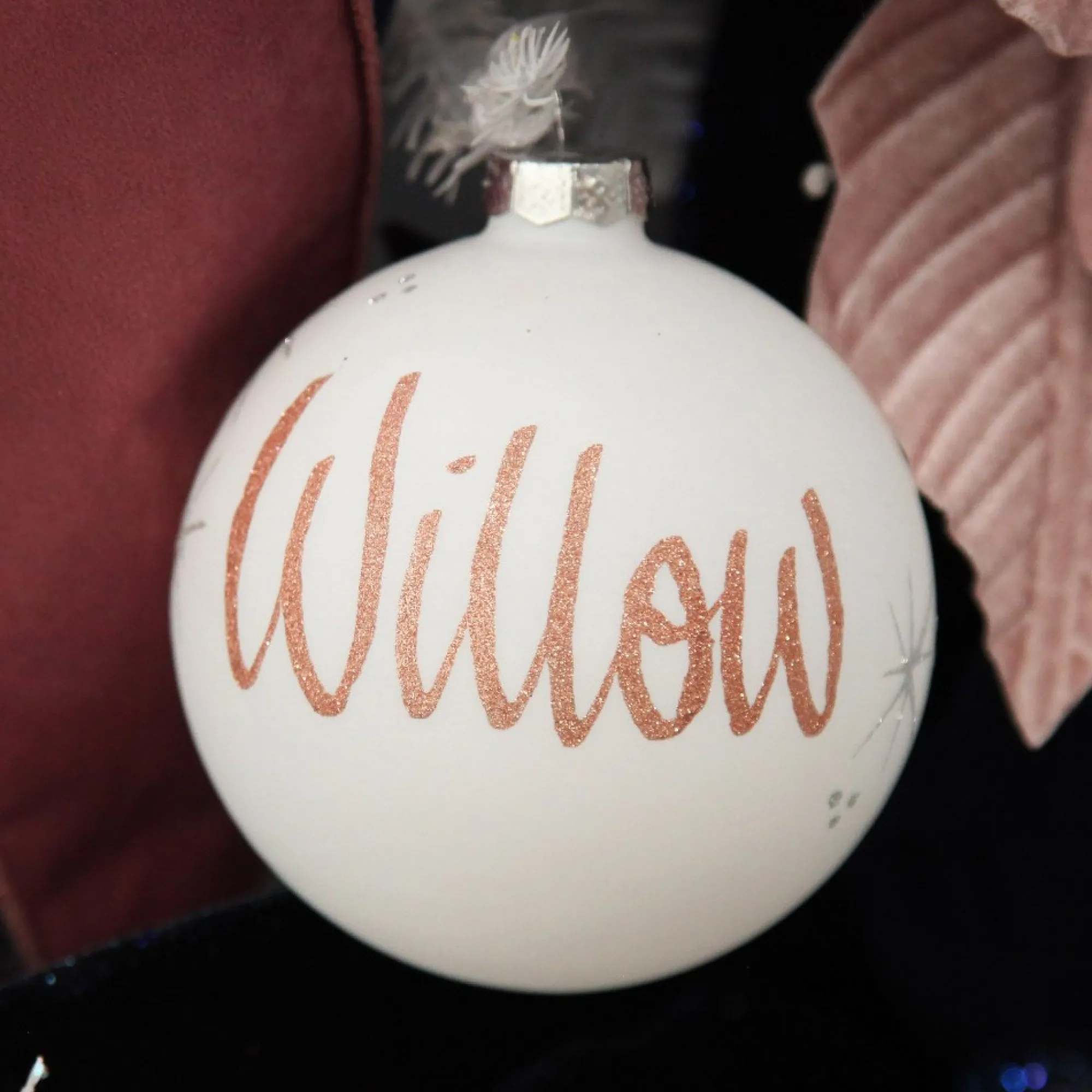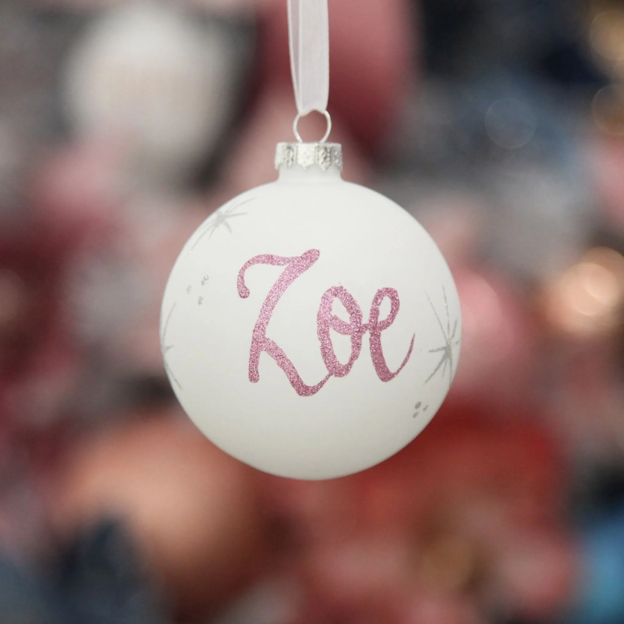 Elegant, Simple And Versatile, This Bauble Is Sure To Fit Any Christmas Decorating Theme For Many Christmases To Come. Price Includes Calligraphy. Simply Choose Your Glitter Colour, Add A Name, A Year, And A Message To Create A Unique Gift This Christmas.