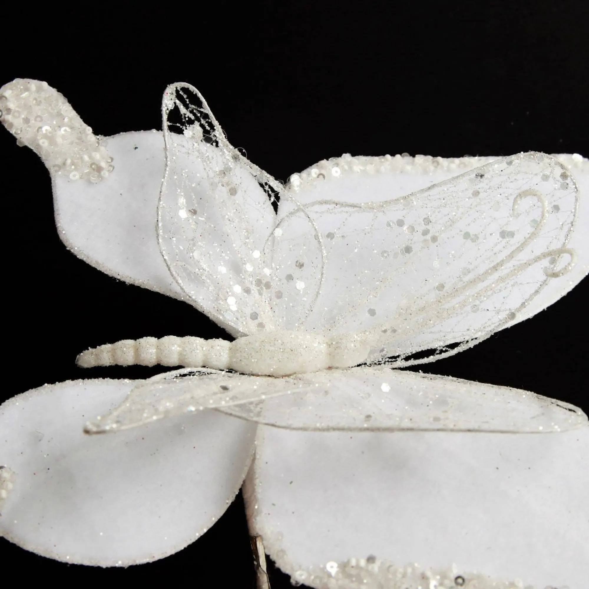 Welcome A Little Sparkle And Festive Cheer Into Your Home This Christmas With Our White Mesh Double Wing Butterfly Clip. Featuring A Stunning Butterfly That Captures The Essence Of Winter’s Embrace In A White Colour That Radiates Serenity. With Lightweight Materials, This Is An Easy-To-Use Clip That Will Be The Perfect Decoration To Adorn Your Home. Its Shimmering Glitter And Sequin Finish, And Layered Wings Seamlessly Blends Modern Trends With Timeless Sophistication, Creating A Festive Atmosphere That’s Nothing Short Of Enchanting.