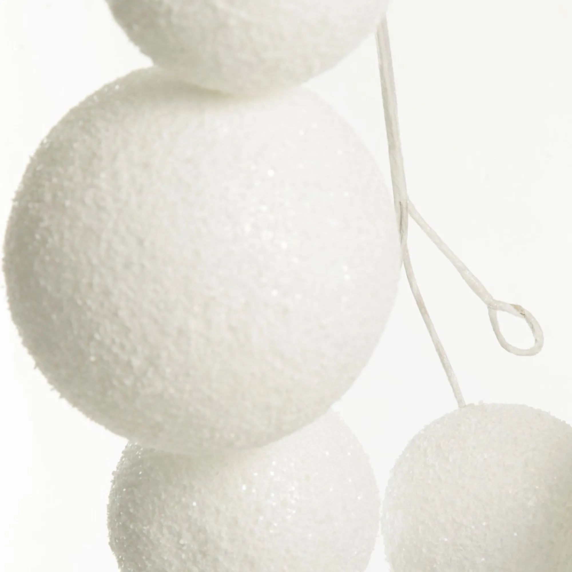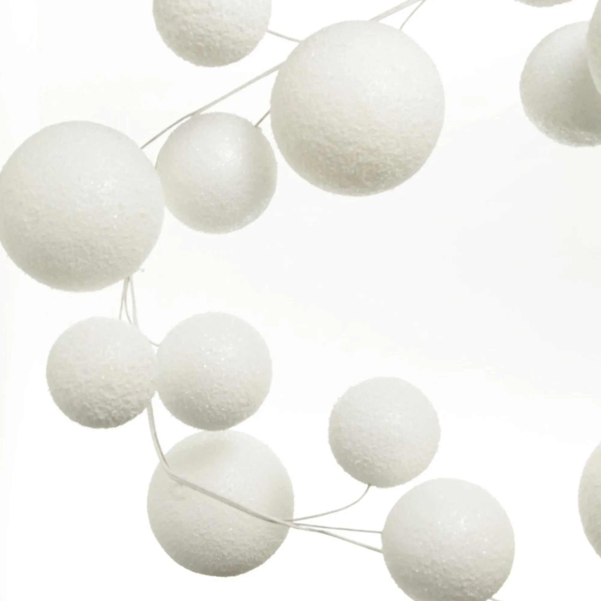 Add Some Fun To Your Festive Home Decor With Our White Snowball Christmas Garland. Crafted With Lightweight Materials, This Garland Features A Collection Of Mixed Sized White Glitter Snowballs. A Delightful Glitter Covering For Each Of The 21 Snowballs For An Extra Festive Touch. Use This Garland As A Part Of Your Christmas Decorating On Your Tree Or With Other Floral Garlands. A Cheerful Addition To Any Christmas Display.