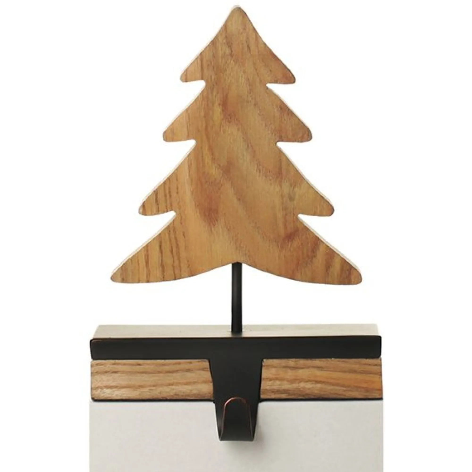 Crafted From A Combination Of Durable Wood And Iron, This Stocking Holder Features A Christmas Tree Cut From Warm Natural Timber With A Black Iron Base And Hook On The Front Side. The Hanger Has A Weighted Base Ensuring Easy Placement Even When Stocking Is Filled With Small Gifts.